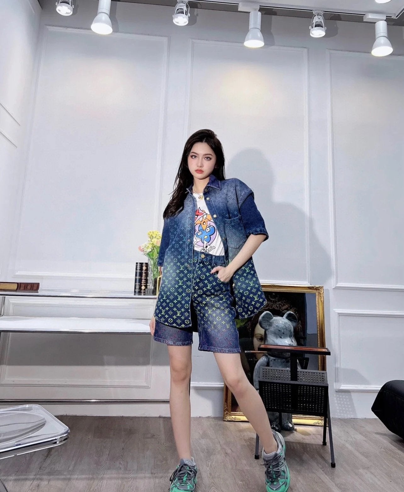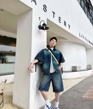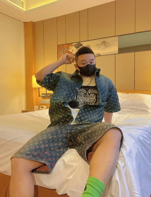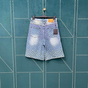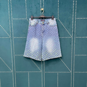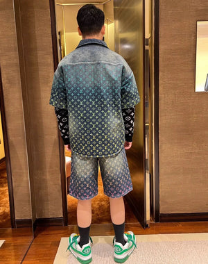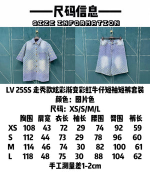 25SS Runway Style Colorful Gradient Rainbow Denim Short Sleeve Shorts Set