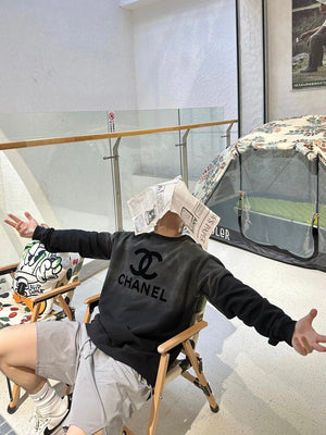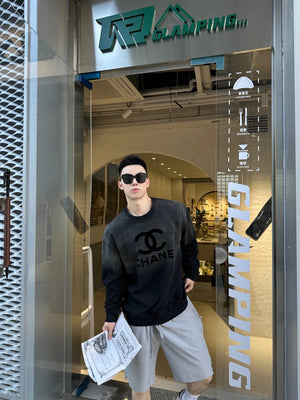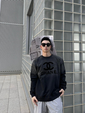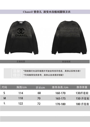 Chanel Hoodie Gradient Washed Flocking LOGO round Neck Sweater size:S-L