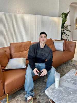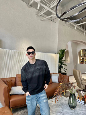 PRADA Hoodie Gradient Washed Triangle Mark round Neck Sweater for Men and Women