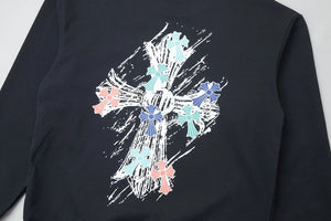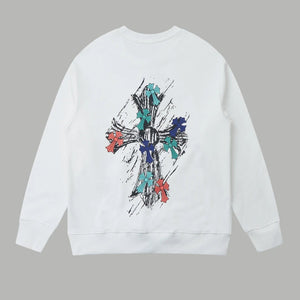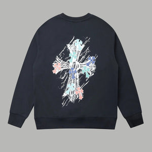 Chrome Hearts Graffiti Hand-drawn Cross Letter Print Pullover Crewneck Sweatshirt