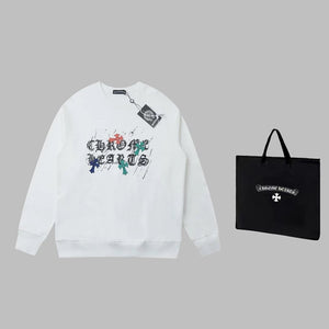Chrome Hearts Hoodie Graffiti Hand-drawn Letter Print Pullover Crewneck Sweatshirt Pure Cotton Terry Sportswear Os Unisex Fit Top24ss Autumn and Winter New Products