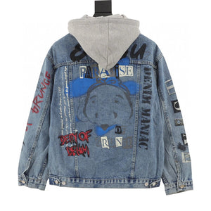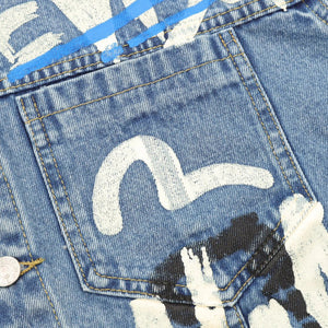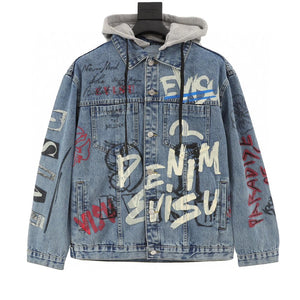 Evisu Jackets Graffiti Patterned Denim Jacket Same Style for Men and Women