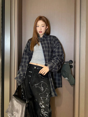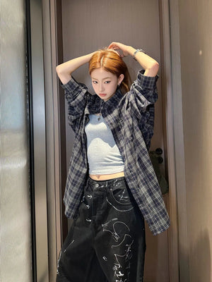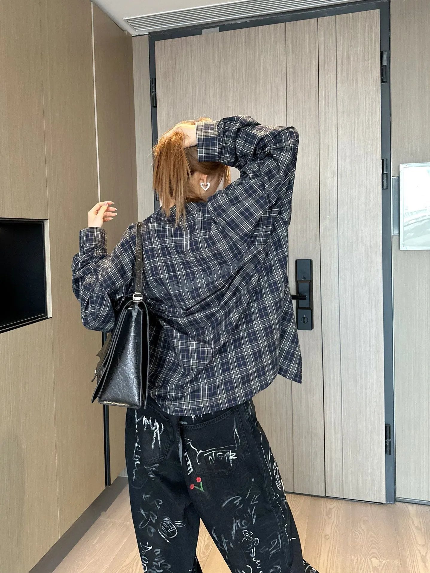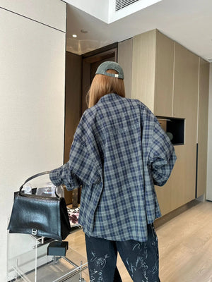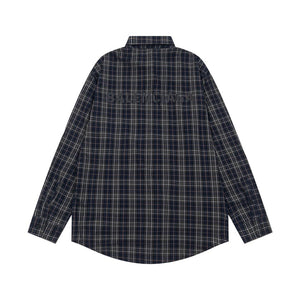 Balenciaga Shirt Green and gray plaid back logo Long Sleeve Shirt Versatile Casual Loose Fit Turn-down Collar Long Sleeve Shirt os Unisex Style24ss Autumn and Winter New Products