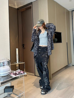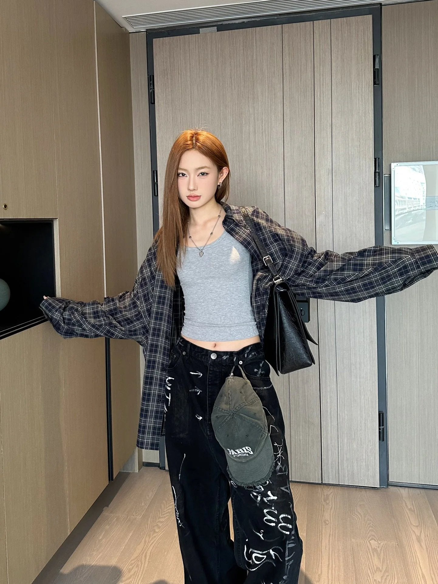Lightweight Plaid Flannel Paris Fashion Week Haute Couture Show Custom Development Dark Green Plaid Poplin Fabric OS Oversized Design Infrared Laser Alignment Cutting Process Fully Aligned Imported Eco-friendly Glue Screen Printing Process