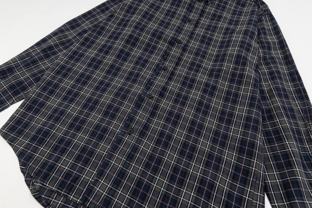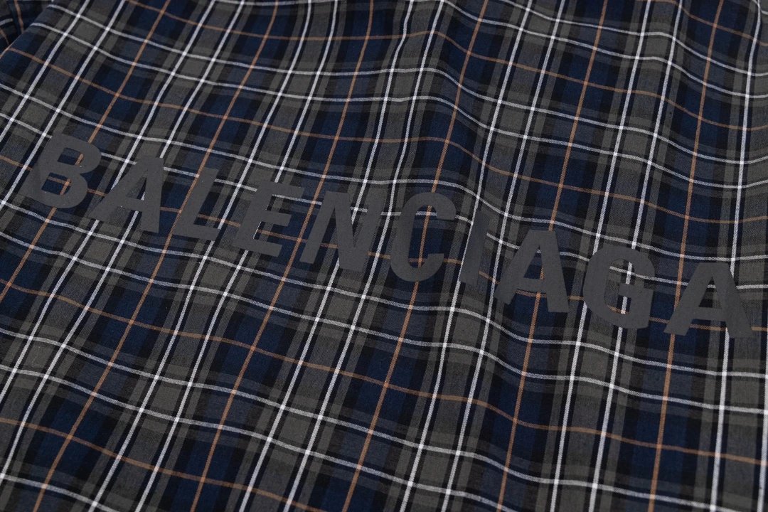 Balenciaga / Paris Saint-Germain BLCG 24SS Green and Gray Plaid Back Logo Long Sleeve Shirt Unisex Versatile Correct Version
