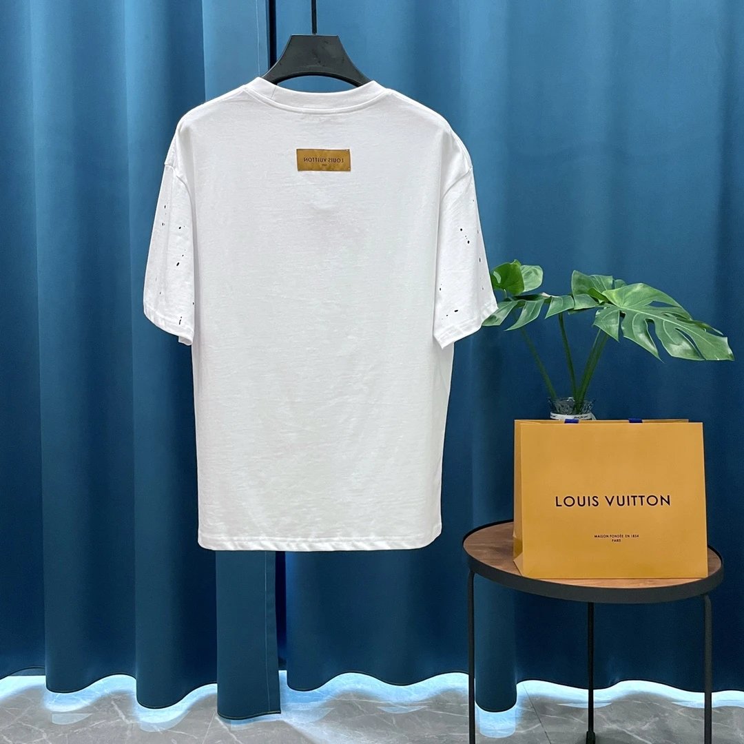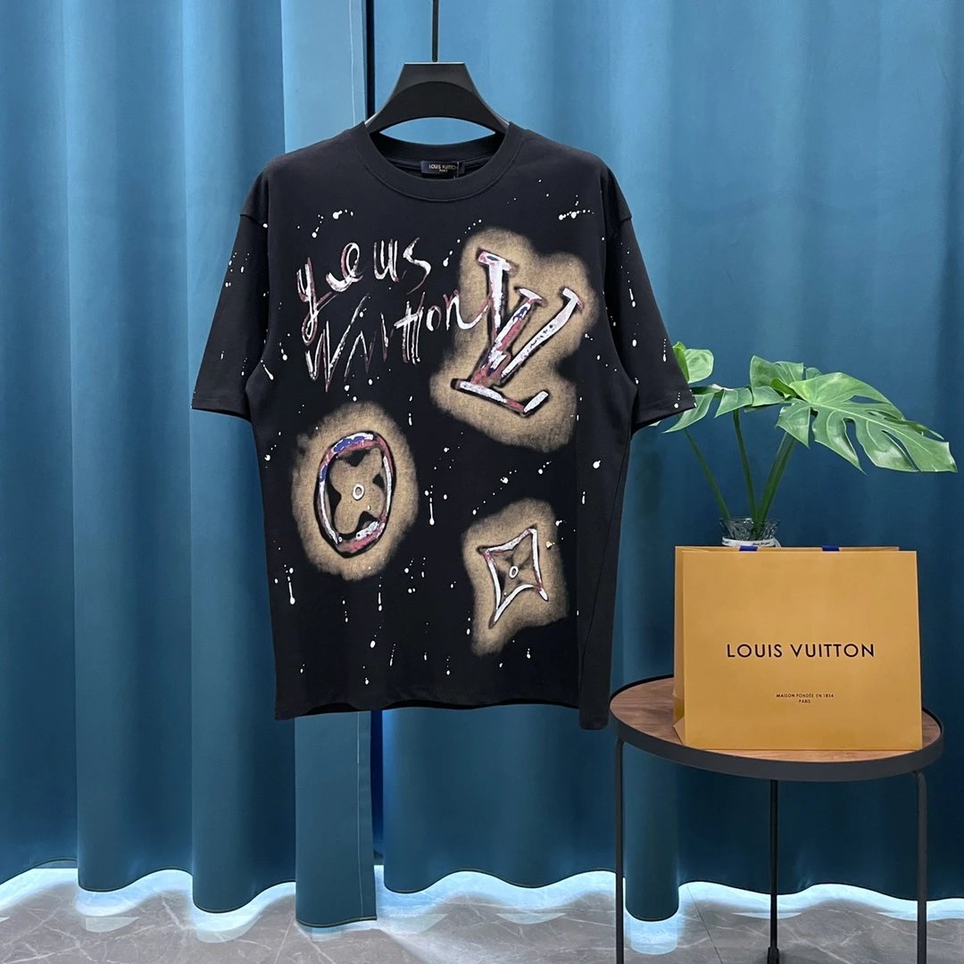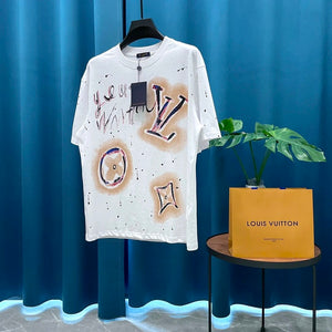 Louis Vuitton LV T-shirt Hand Drawn logo round Neck Short Sleeve25ss New Pure Cotton Unisex Style T T-shirt OS Loose Fit Base Shirt Casual Top Short Sleeve T-Shirt