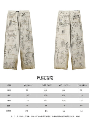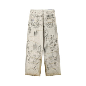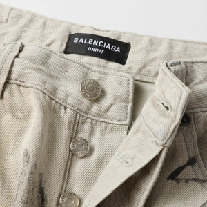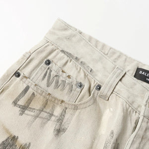 Balenciaga Jeans Hand-painted Graffiti Paint Dirty Washed Jeans Casual Pants Straight Pants Wide-leg Pants High-waisted Pants Loose Long Pants Unisex24ss Autumn and Winter New Products