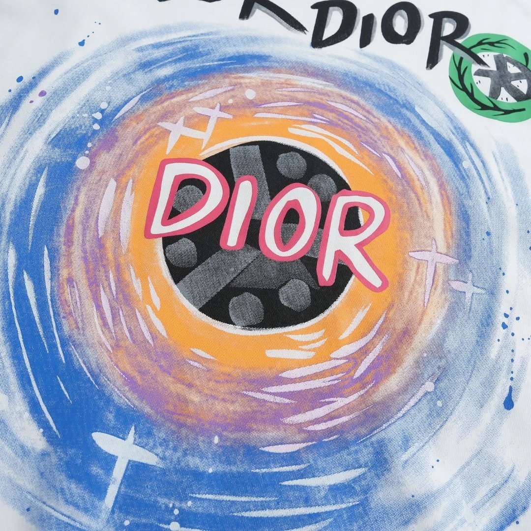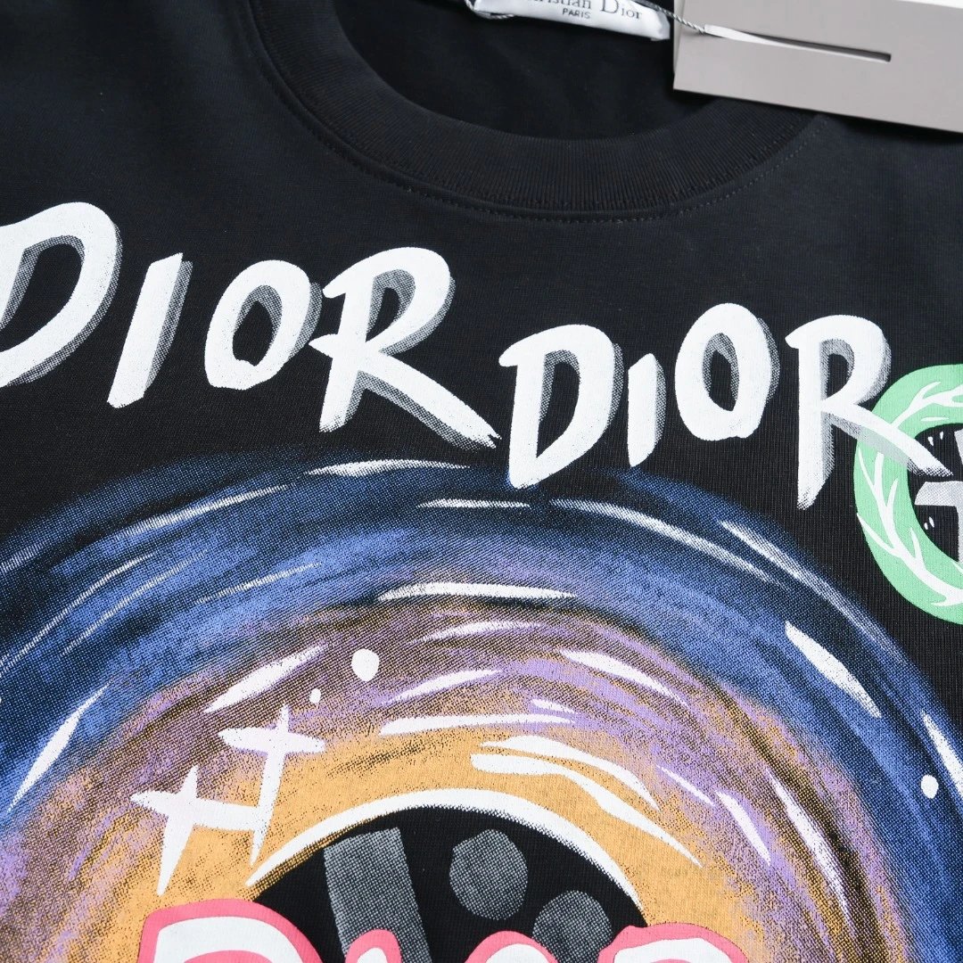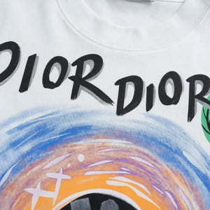 Dior T-shirt Hand-painted Letter Pattern Print on the Chest logo round Neck Short Sleeve25ss New Pure Cotton Unisex Style T T-shirt OS Loose Fit Base Shirt Half Sleeve T-Shirt Top Half Sleeve