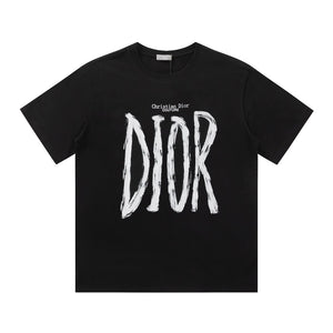 Dior T-shirt Hand-painted Letter Print on the Chest logo round Neck Short Sleeve25ss New Pure Cotton Unisex Style T T-shirt OS Loose Fit Base Shirt Half Sleeve T-Shirt Top Half Sleeve