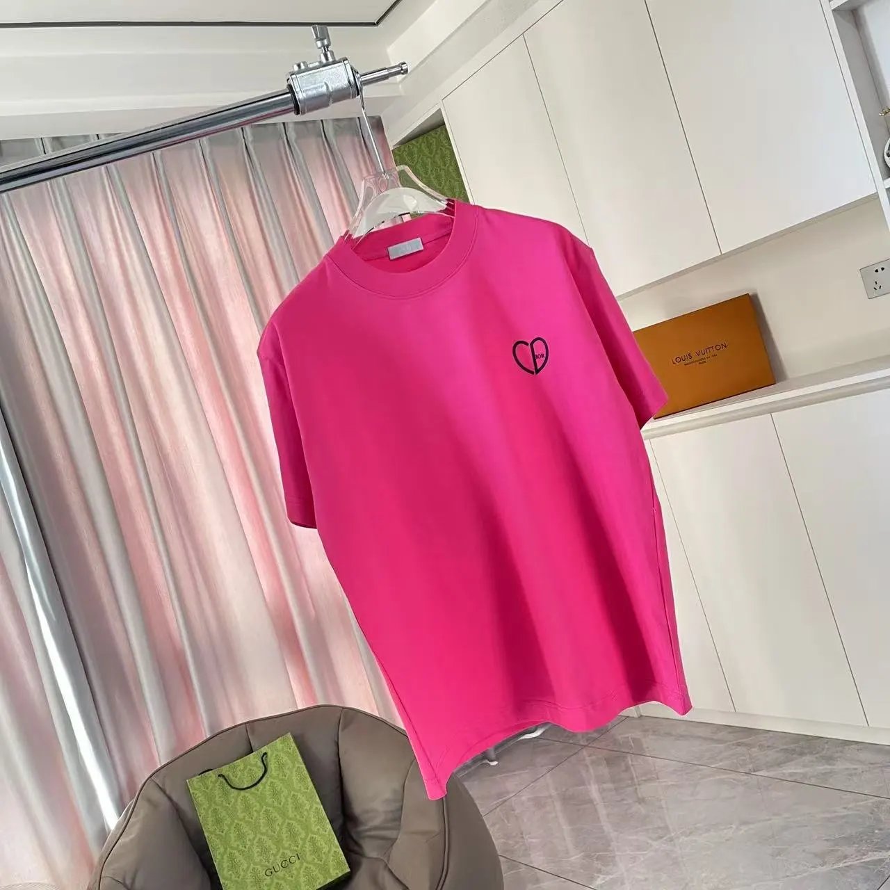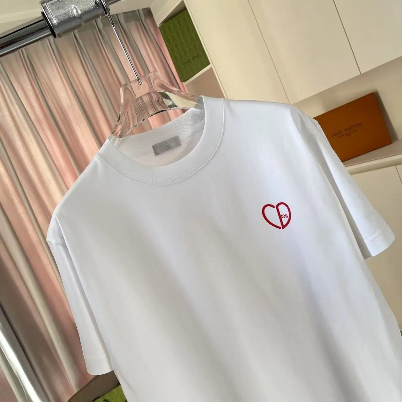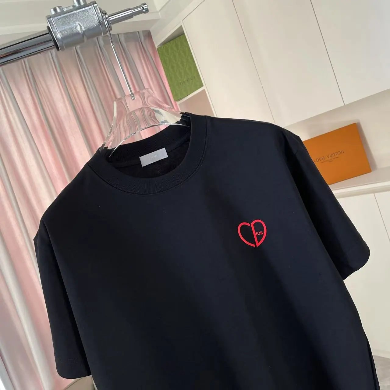 Dior T-shirt Heart Letter Print on the Chest logo round Neck Short Sleeve25ss New Pure Cotton Unisex Style T T-shirt OS Loose Fit Base Shirt Top Half Sleeve T-Shirt