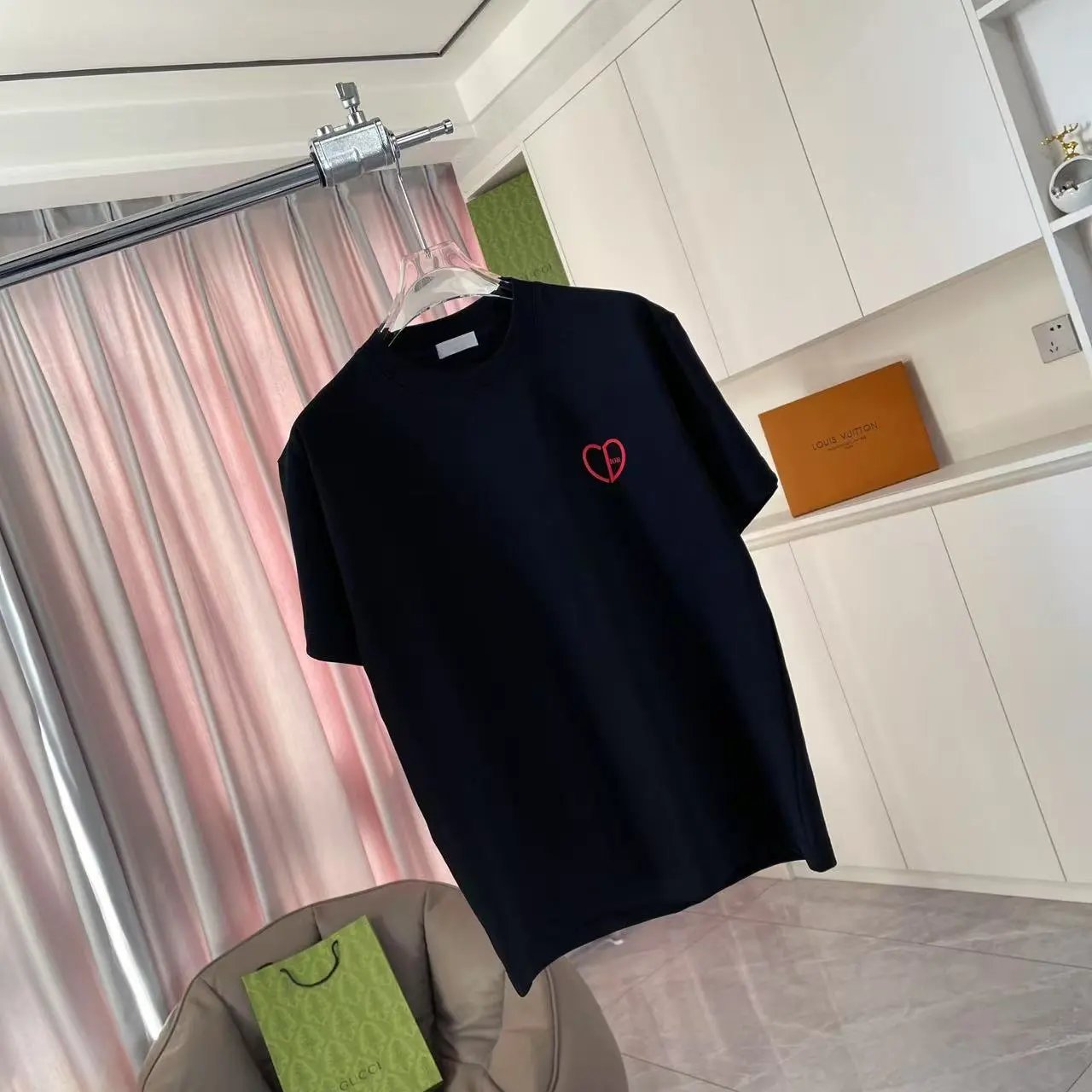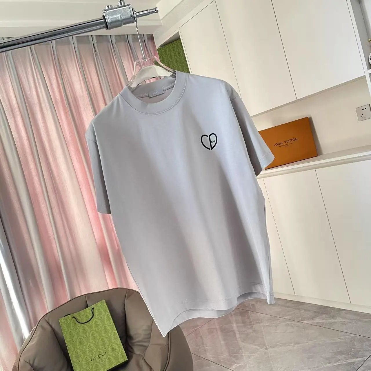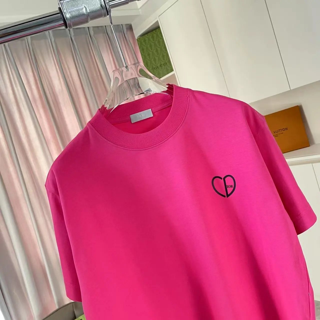 Dior T-shirt Heart Letter Print on the Chest logo round Neck Short Sleeve25ss New Pure Cotton Unisex Style T T-shirt OS Loose Fit Base Shirt Top Half Sleeve T-Shirt