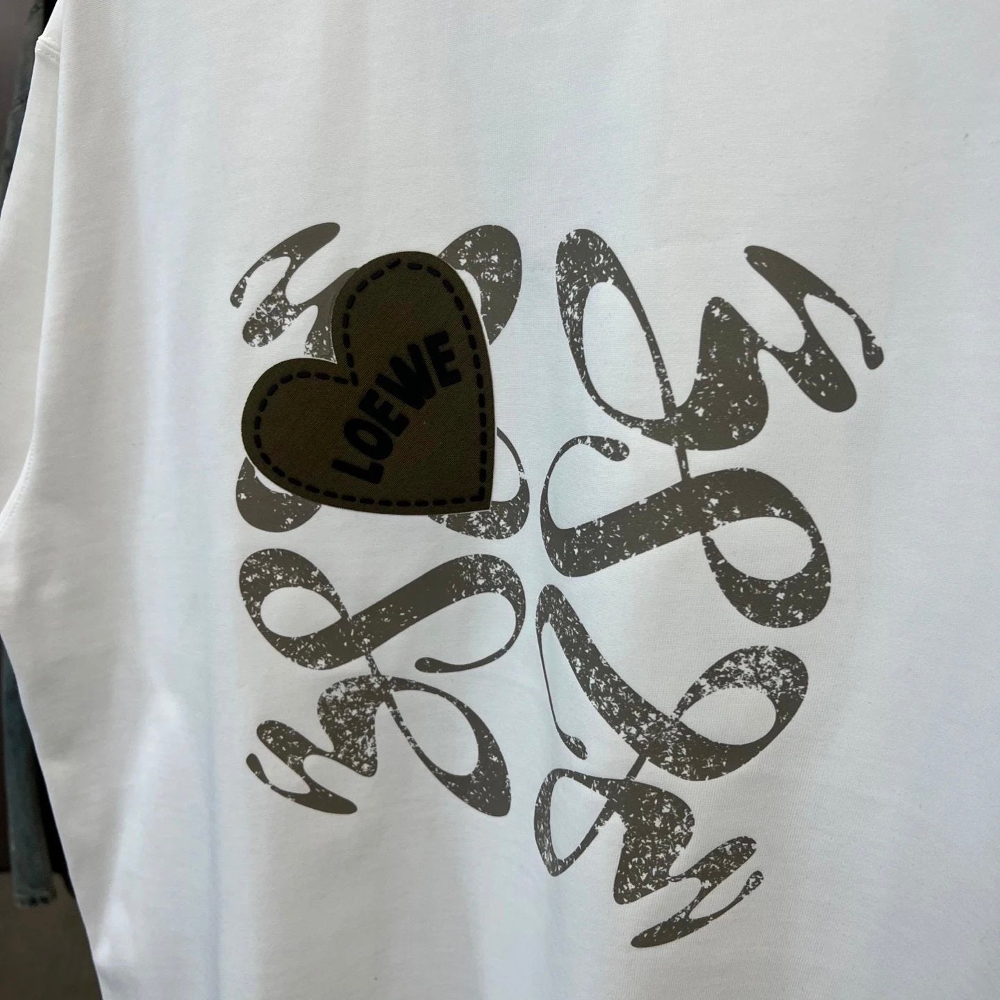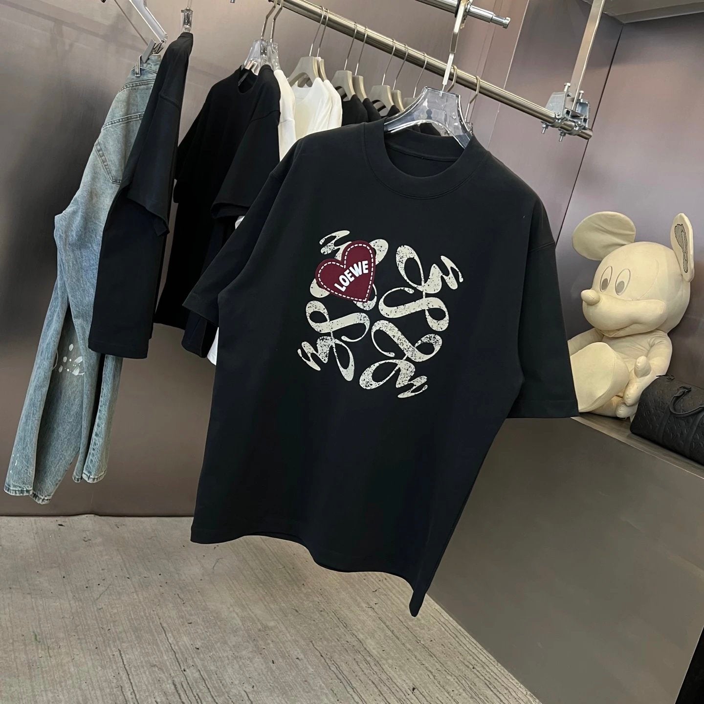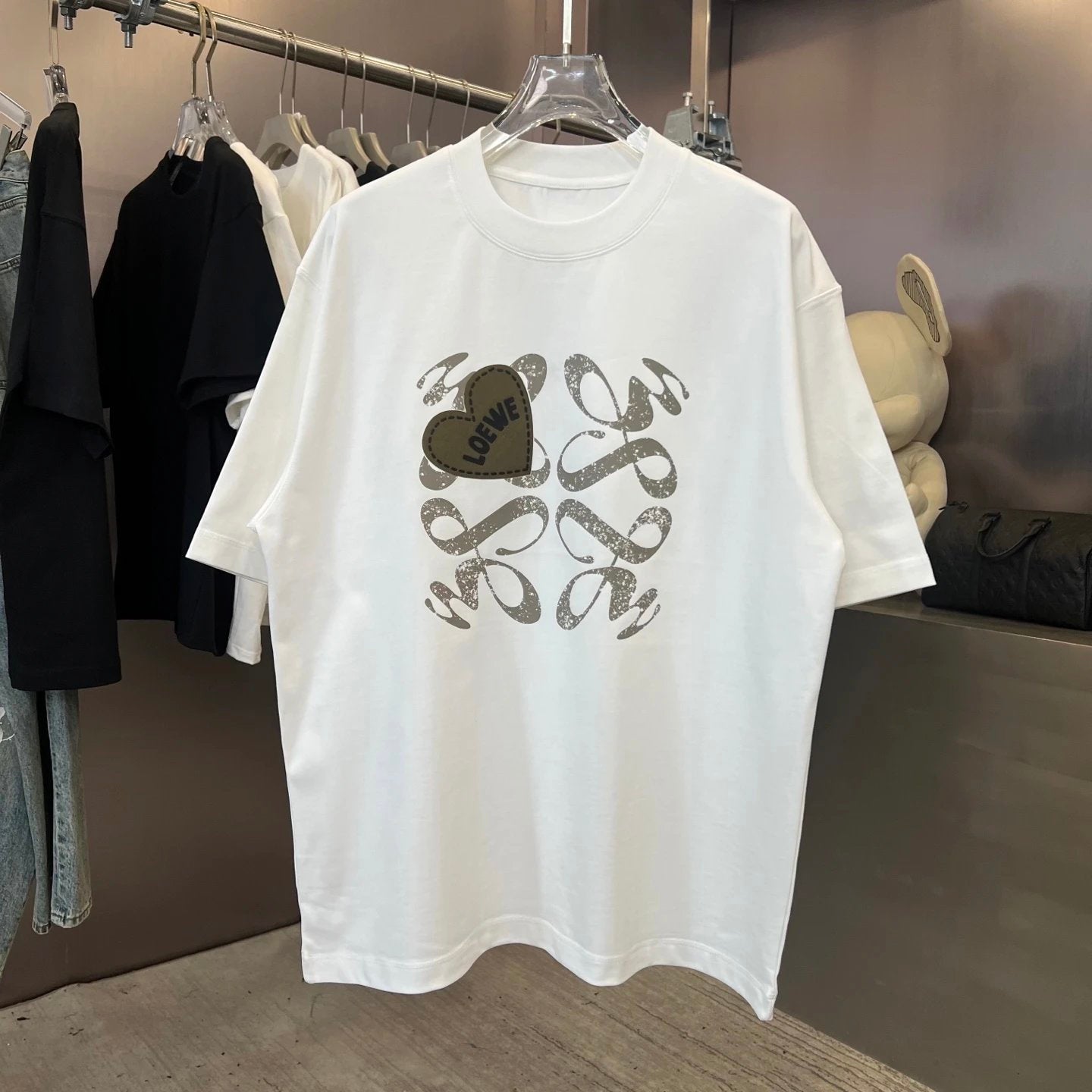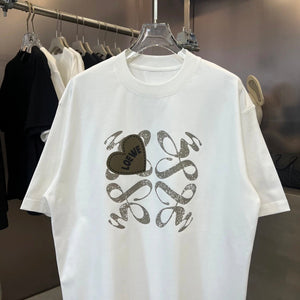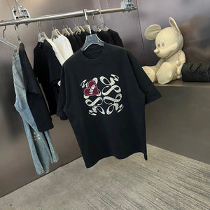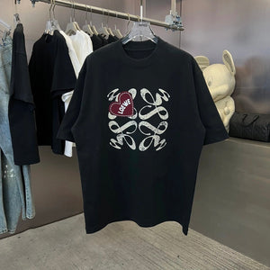LOEWE T-shirt Heart Pattern Embroidery on the Chest logo round Neck Short Sleeve25ss New Pure Cotton Unisex Style T Casual T-Shirt Base Layer Shirt OS Loose Fit Half Sleeve Top Plus Size
