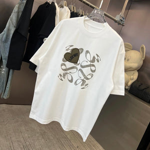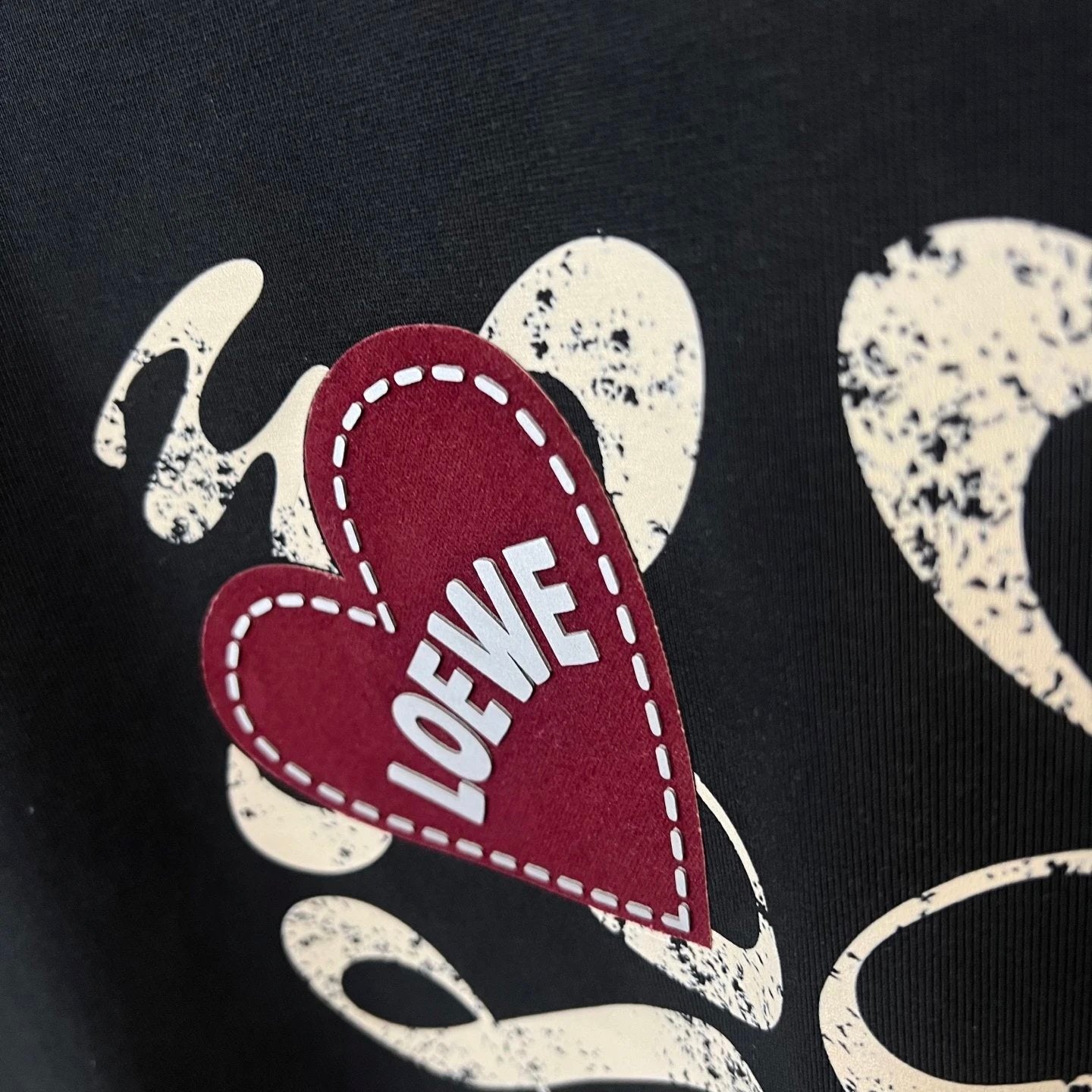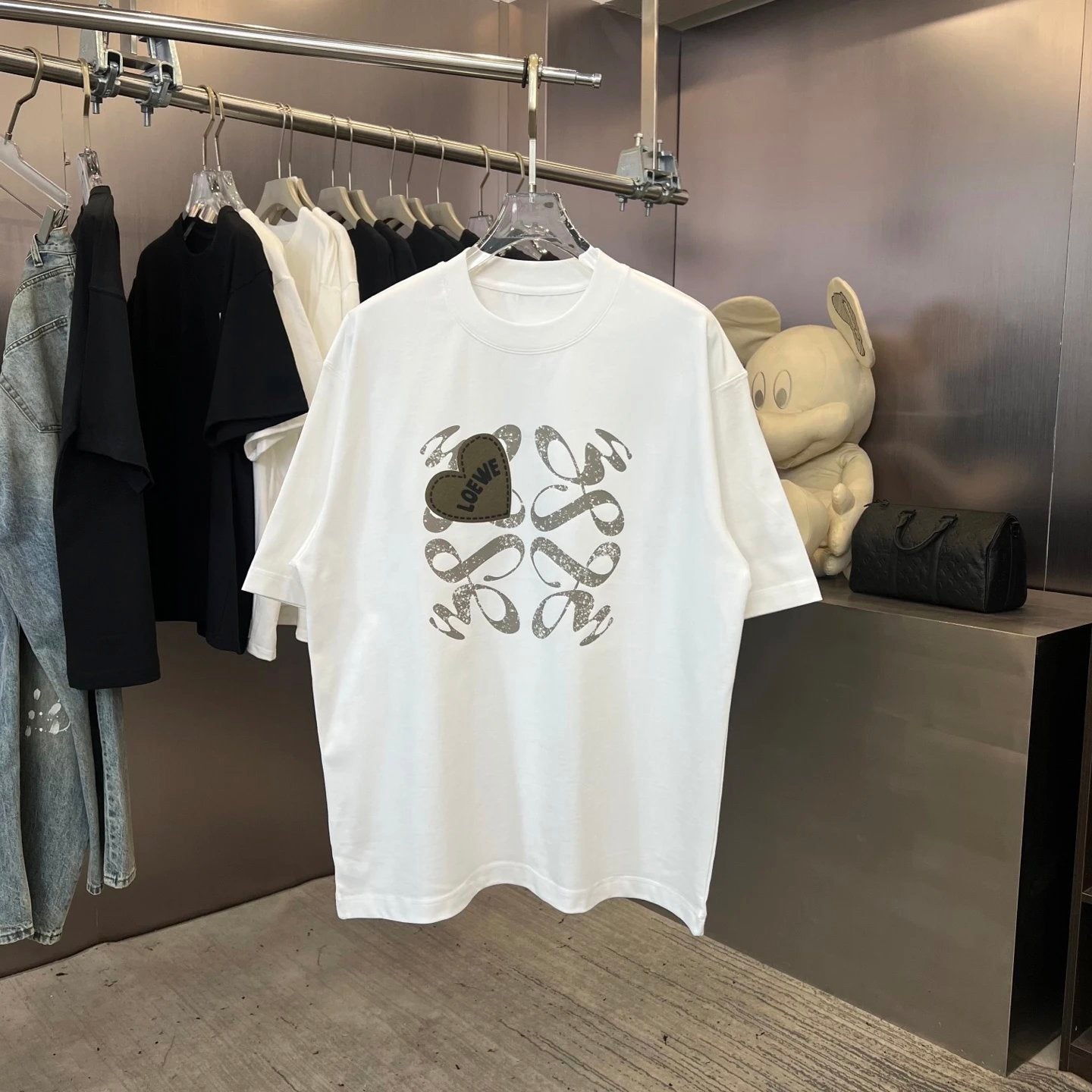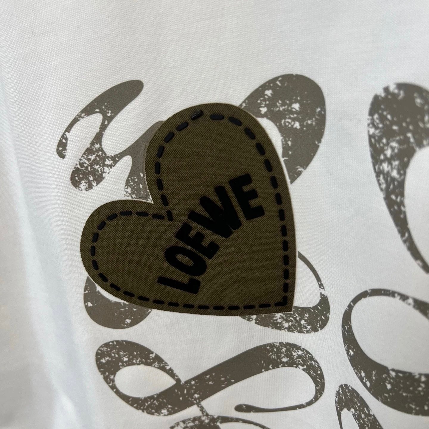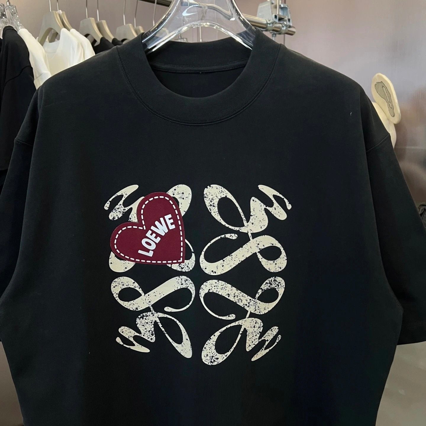 LOEWE T-shirt Heart Pattern Embroidery on the Chest logo round Neck Short Sleeve25ss New Pure Cotton Unisex Style T Casual T-Shirt Base Layer Shirt OS Loose Fit Half Sleeve Top Plus Size