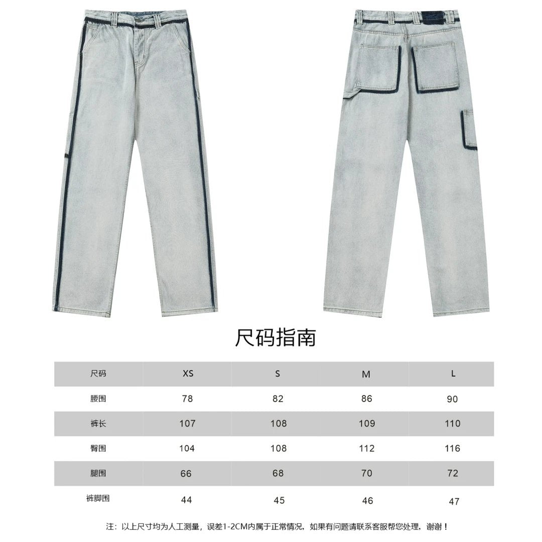 Top Version Margiela MM6 Heavy Wash Ice Blue Craft Jeans Pants Set Simple Versatile Loose Version Unisex Pre-Purchase Instructions