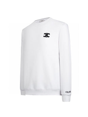 Top Version Cel*ne Arc de Triomphe Embroidered High-Density Crewneck Sweatshirt Long Sleeve Pullover Thickened Lazy Style OS Version Loose Fit Unisex Loose Knit Top Versatile Casual Wear