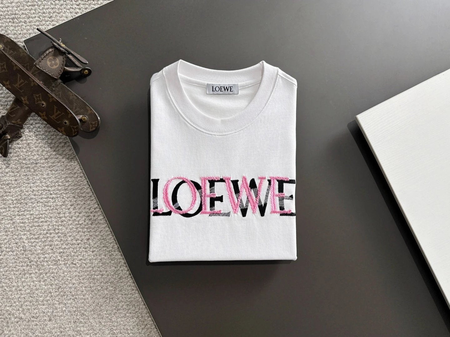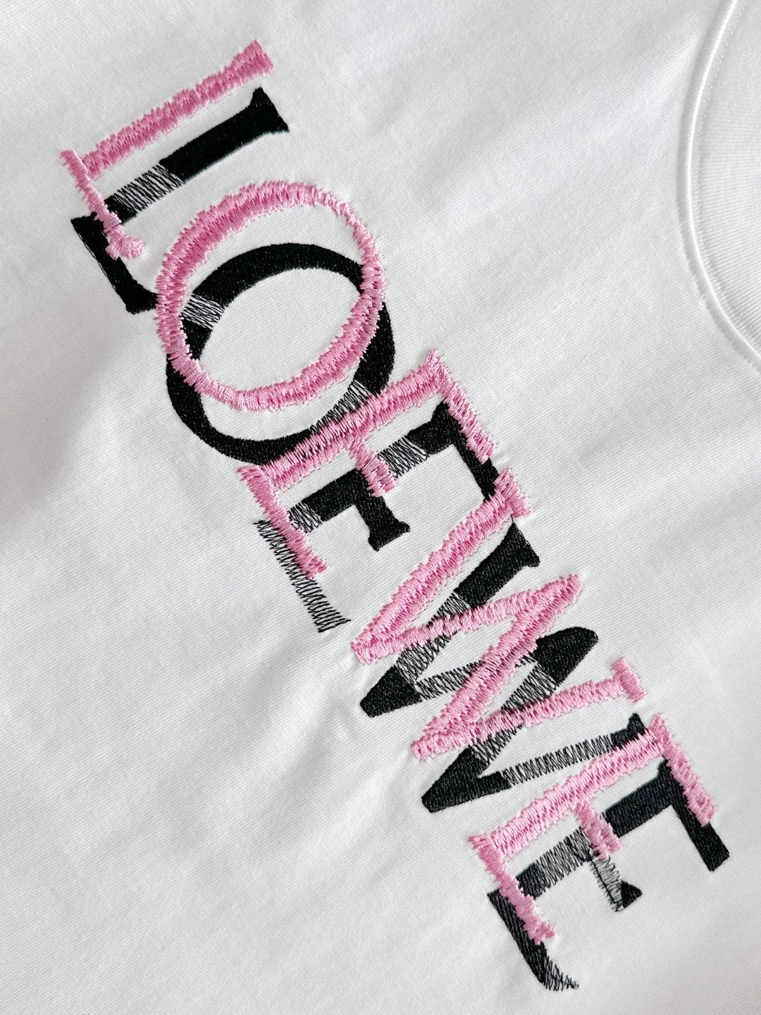 LOEWE T-shirt High-density Overlapping Letter Embroidery on the Chest logo round Neck Short Sleeve25ss New pure cotton T Unisex T-Shirt OS Loose Fit Base Shirt Top Half Sleeve T-Shirt