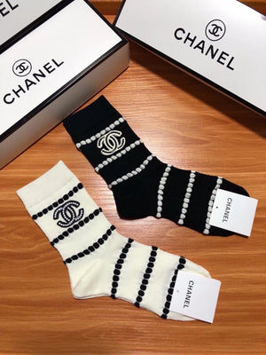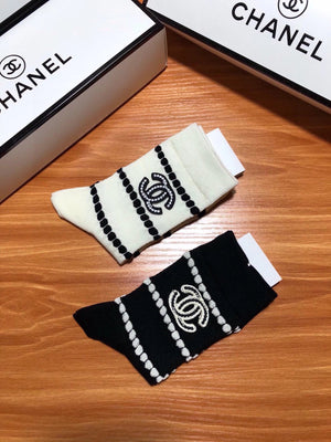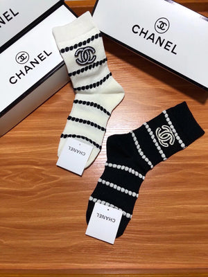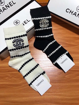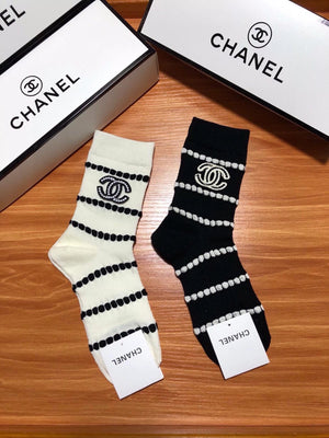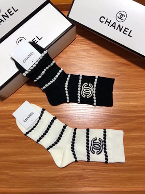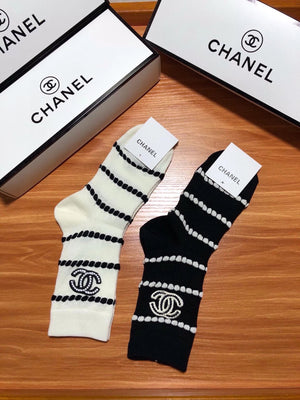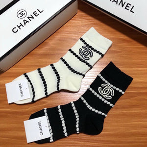 Chanel Sock High-End Socks️New Trending Women Mid-Calf Socks❗️【Two Pairs Per Box】Mulberry Silk Material,Woven Classic Double C Flag,Breathable and Comfortable
