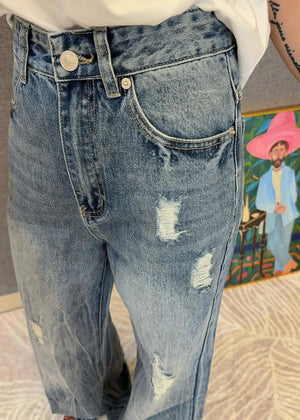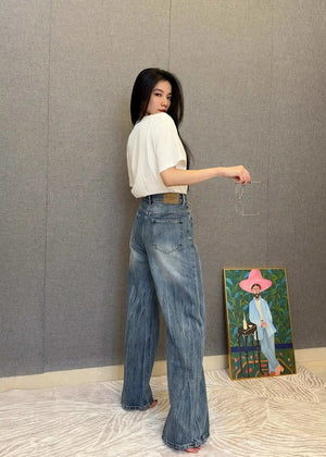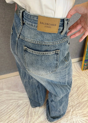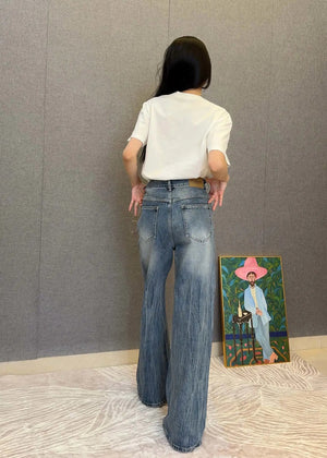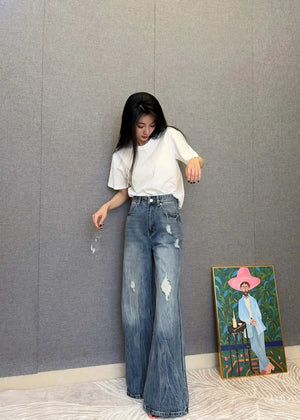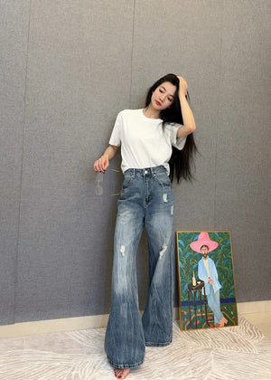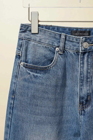 Balenciaga Jeans High Waist Ripped Jeans for Women, Versatile Casual Loose Fit Long Pants