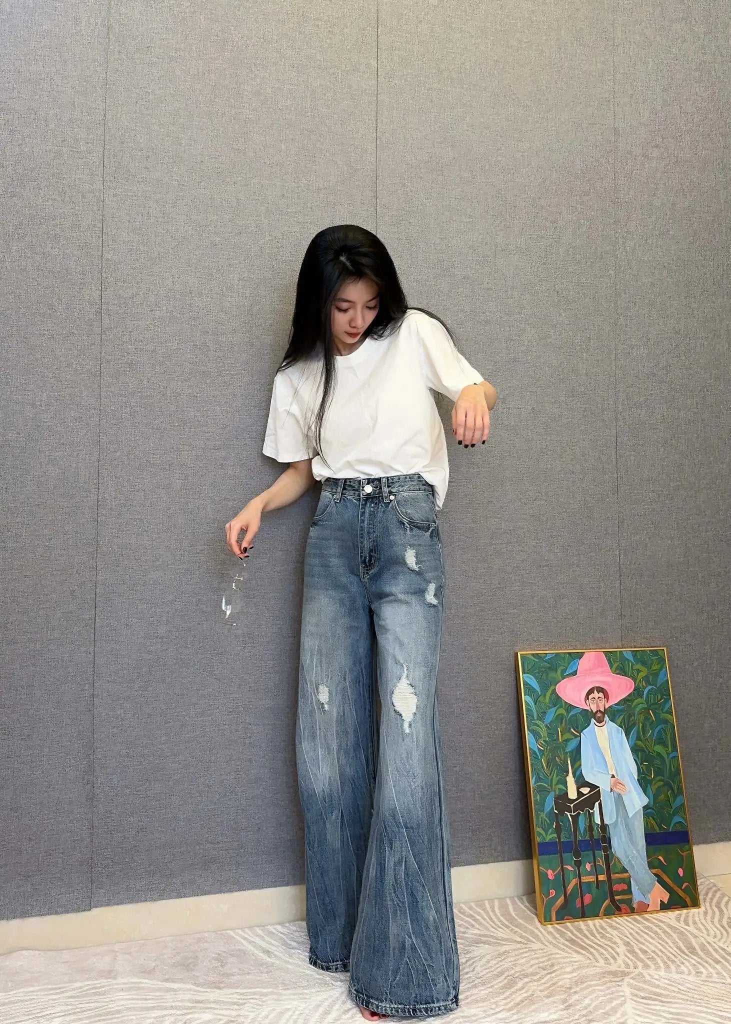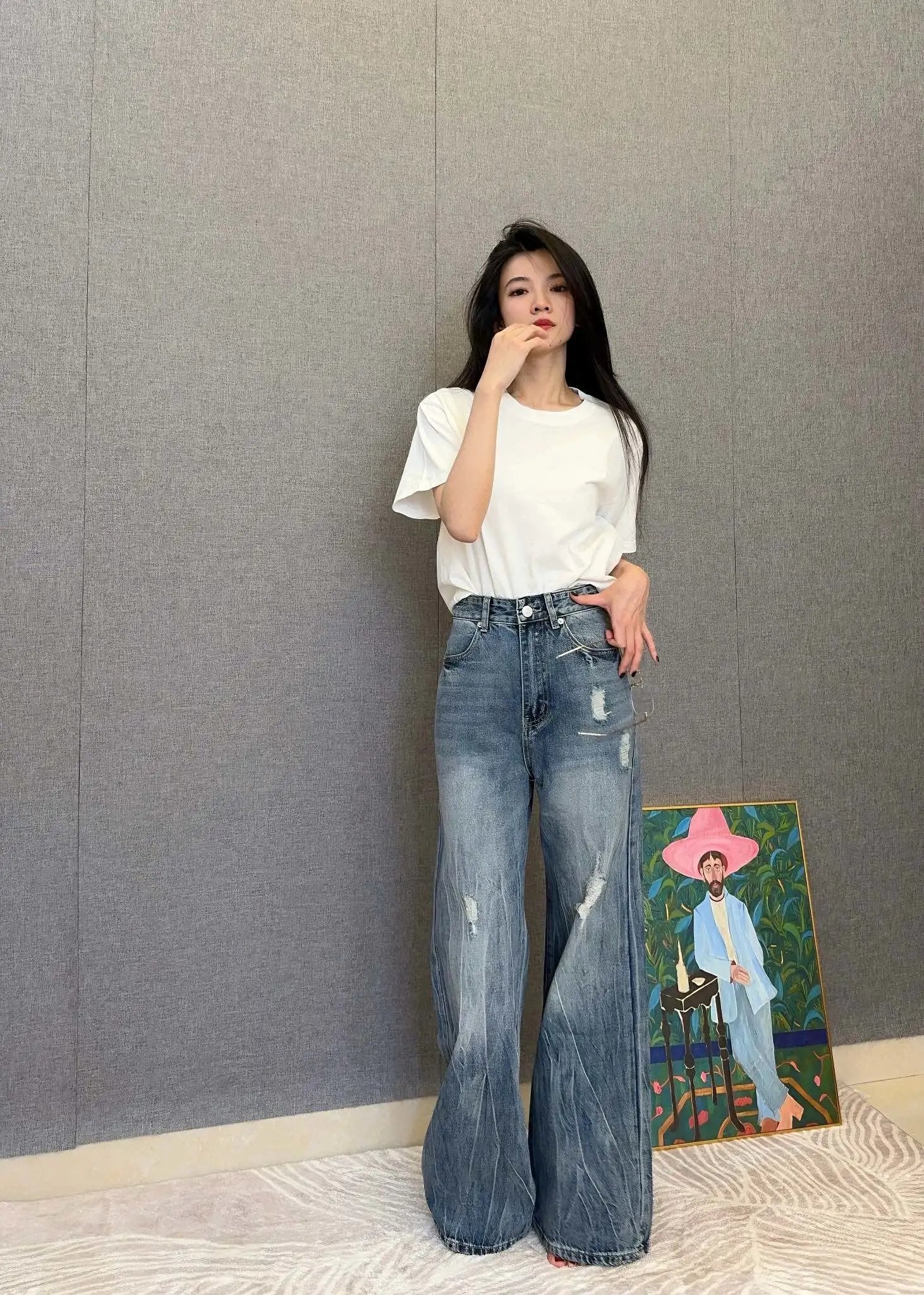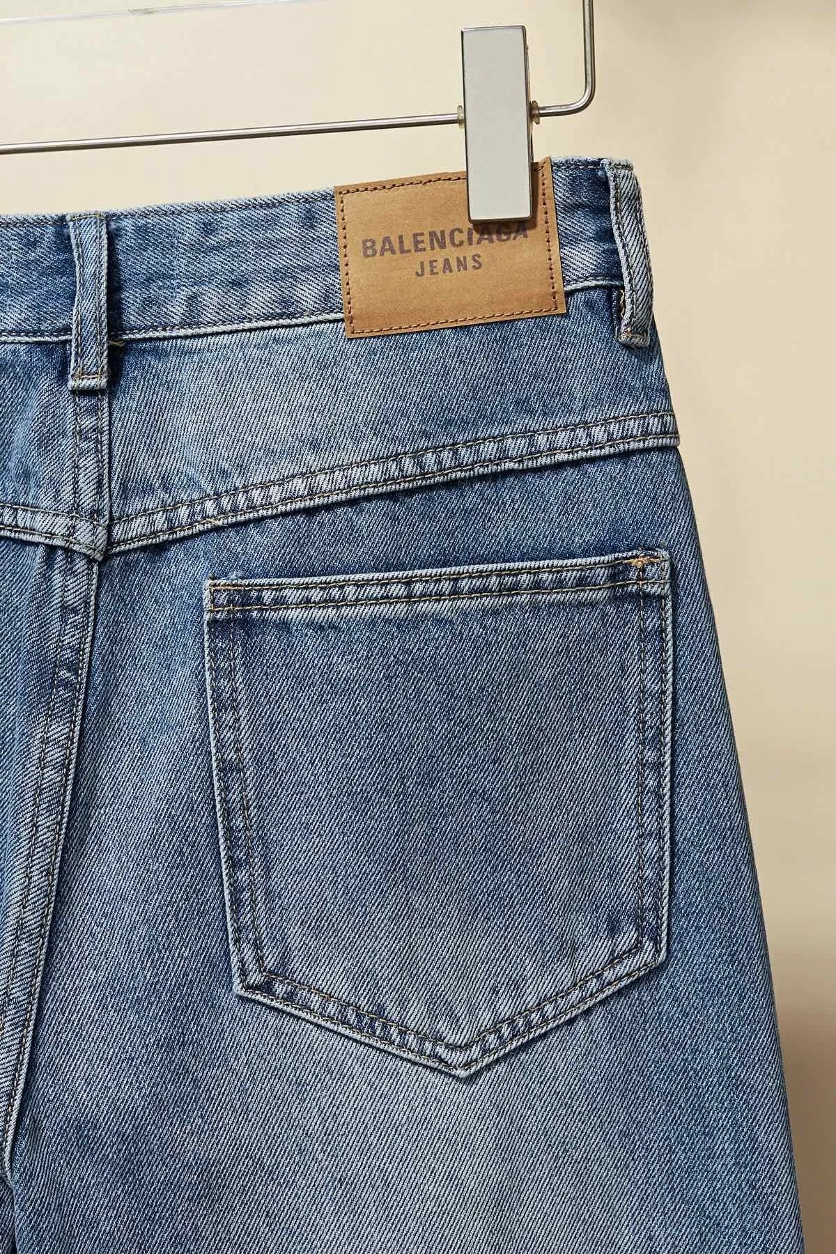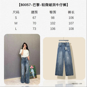 Top Version Balenciaga** Floor-Length Distressed Jeans for Women Versatile Casual Loose Fit B-Parent Pants Pre-Purchase Instructions