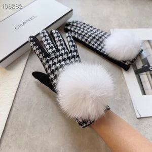 Chanel Gloves Home High Quality Xianger Counter New Wool Gloves,Fashion Gloves,Autumn and Winter Warm Velvet Lining,Super Comfortable and Soft、All-Matching!Average Size