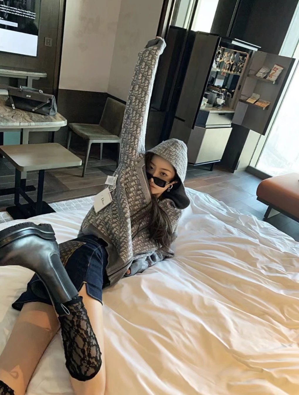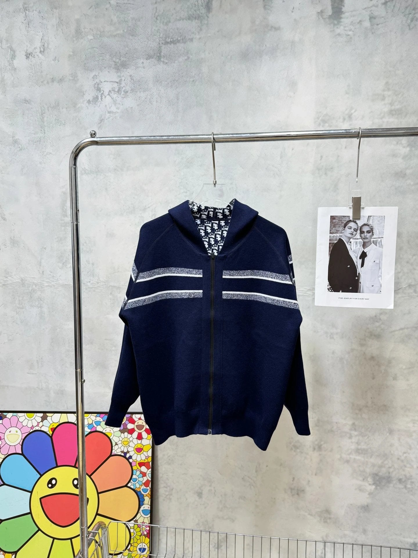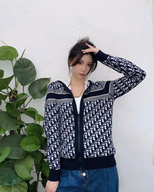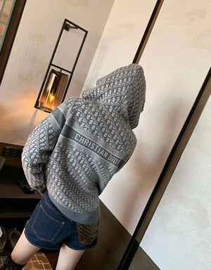 Dior Hooded Cashmere Cardigan Double-Sided Zipper Knitted Coat
