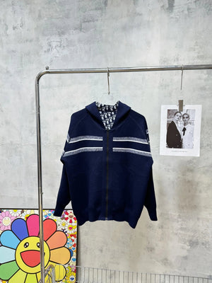 Dior Sweater Hooded Cashmere Cardigan Double-Sided Zipper Sweater Coat Casual Loose Hoodie Jacket Sweater Cardigan Men and Women Same Style os Version24ss Autumn and Winter New Products