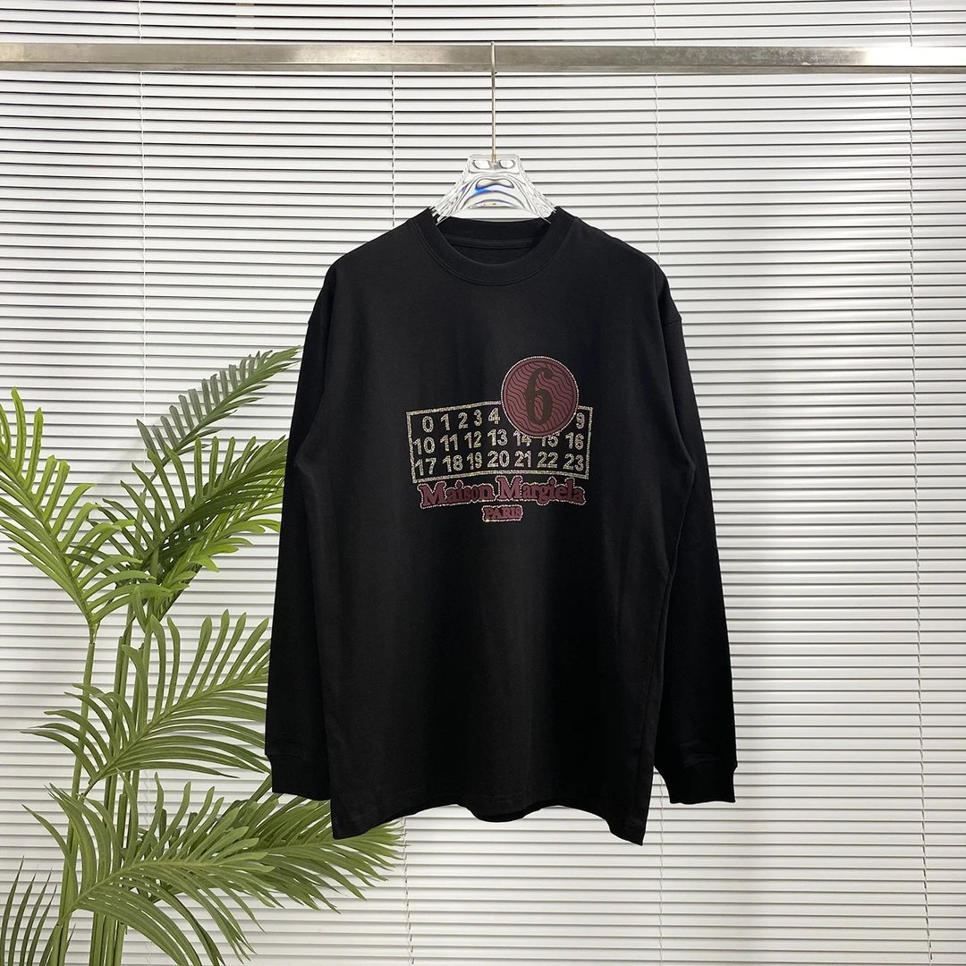 Maison Margiela Hoodie Hot Drilling logo24s Autumn and Winter Long Sleeve T Round Neck Sweatshirt Long Sleeve Base Shirt Outerwear Trendy Unisex Sports Casual Loose Fit Versatile Autumn Winter New Arrival