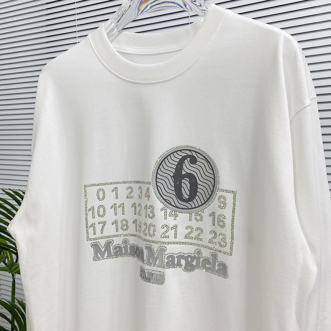 MJL Margiela MM6 Rhinestone Logo 24s Autumn Winter Long Sleeve T-Shirt Crewneck Sweatshirt Long Sleeve Base Shirt Jacket Top Fashion Unisex Sports Casual Loose Versatile Autumn Winter New Arrival Pre-Purchase Instructions