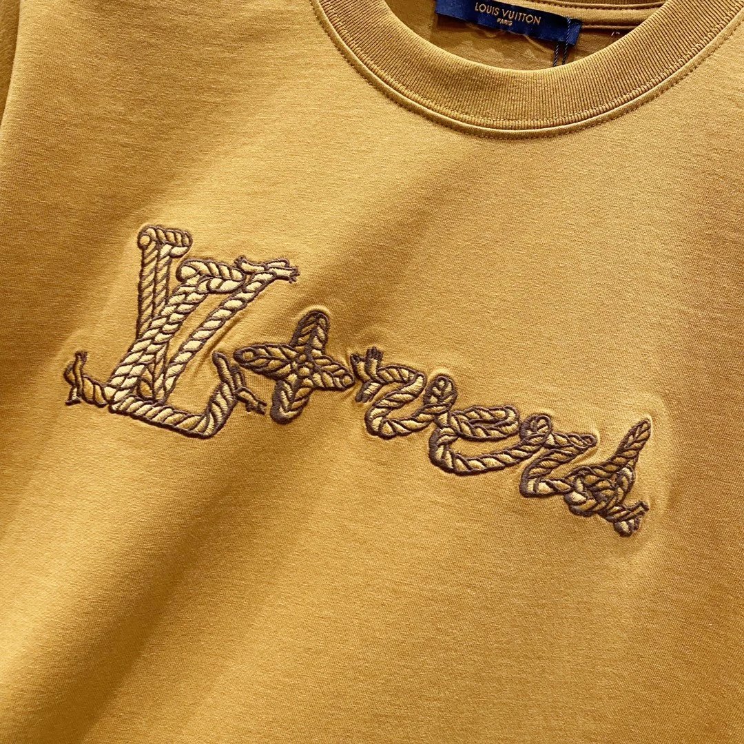 Louis Vuitton LV T-shirt Iconic Hemp Rope Letter Embroidery LOGO Logo Crew Neck Short Sleeve25ss New Pure Cotton Unisex Style T T-shirt OS Loose Fit Base Shirt Casual Short Sleeve Top T-Shirt
