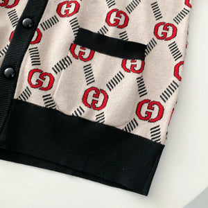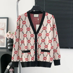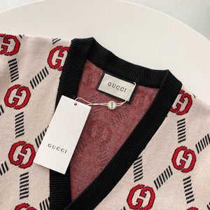 Top Version Guc Gucci Interlocking Double G Diagonal V-neck Cardigan Sweater 25ss Spring New G Brand Jacket Unisex Long Sleeve Soft Lazy Style OS Loose Fit Versatile Casual