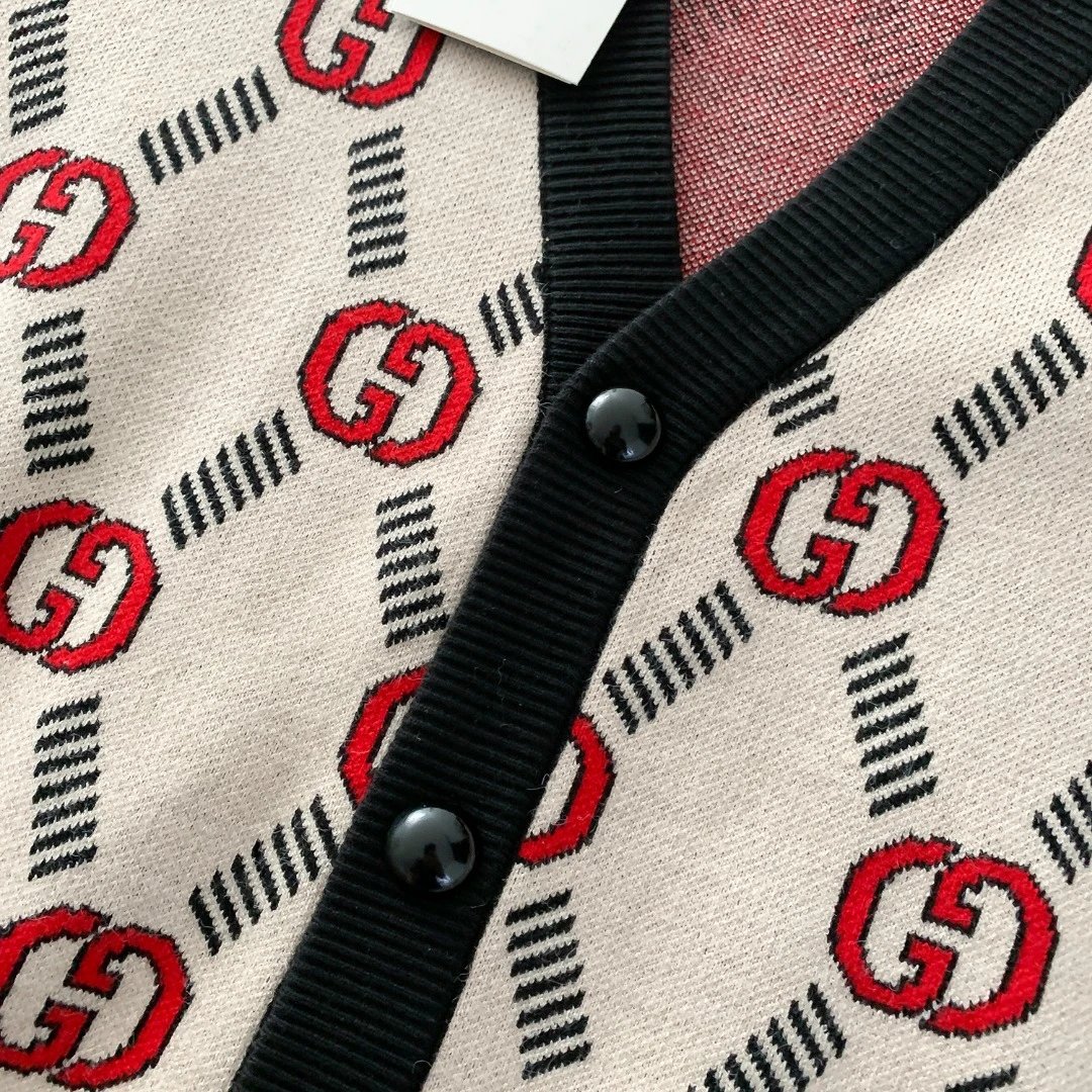 Gucci Sweater Interlocking Double G Diagonal Stripes V Cardigan Sweater25ss Spring New Men's and Women's Same Style Long Sleeve Soft Lazy Style Jacket OS Loose Fit Versatile Casual