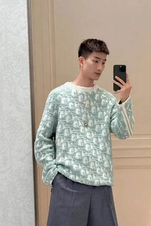 Dior Sweater Jacquard Crew Neck Sweater Pullover Top Coat Unisex Autumn Winter Versatile