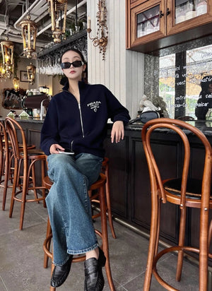 PRADA Sweater Jacquard Letter Knit Sweater Zipper Jacket Unisex Outerwear Soft Lazy Style Thickened Sweater Versatile Casual Wear