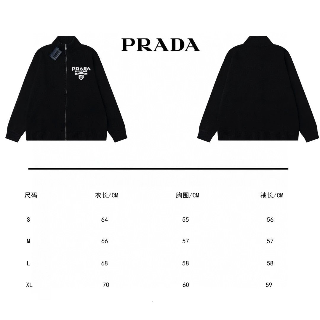 Prada Jacquard Letter Knit Sweater Zipper Jacket Unisex Outerwear Soft Lazy Style Sweater P Brand Thickened Versatile Casual Pre-Purchase Instructions