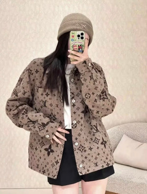Louis Vuitton LV Jackets Jacquard Wool Lapel Jacket Unisex Autumn Winter New Sports Casual Loose Versatile