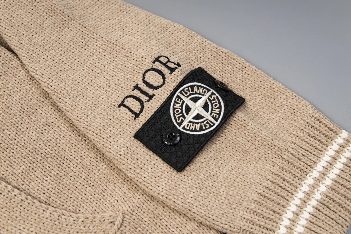 24ss New Knit Sweater from DIOR AND STONE ISLAND Limited Series, showcasing the joint series logo, adorned with the DIOR AND STONE ISLAND logo, highlighting Stone Island's classic star logo with the letter O from Dior's logo. Double zipper design at the top and bottom, cuffs adorned with contrasting detachable co-branded patches, unisex!