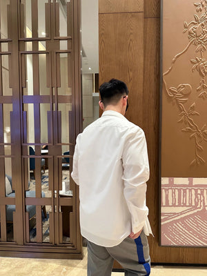 Due to the Customization of Fabrics and the Adjustment of Chest Embroidery N Times, the Shipment Speed Is Not Fast. Products That Seem to Be Extremely Simple Actually Restore Countless Details. the Placket, Cuffs and Neckline All Need Stripe Alignment and Cutting, in the Production Process, All Cutting Piece Need to Be Scalded One by One, Because Stripes Need to Be Pressed. The Duration Is Lengthened. Shell Button and Customized Washing Wheat, Main Wheat and Packaging Bags Are the Most Basic Work. The Special Point Texture of the Fabric Is Designed as a Unique Collar Decorated with Buttons and Top Collar Double Pressing Process. Drop Shoulder Line, Two Hook & Loop Three-Dimensional Pockets, Increase the Sense of Design, Double Bright Line Narrow Eyelid Placket, Lapel, Placket, Cuff with Shell Lettering Buttons. The Arc of the Front Short and Back Length Is Hemline, Which Increases the Level Effect behind the Upper and Lower Sides. Pre-Purchase Instructions