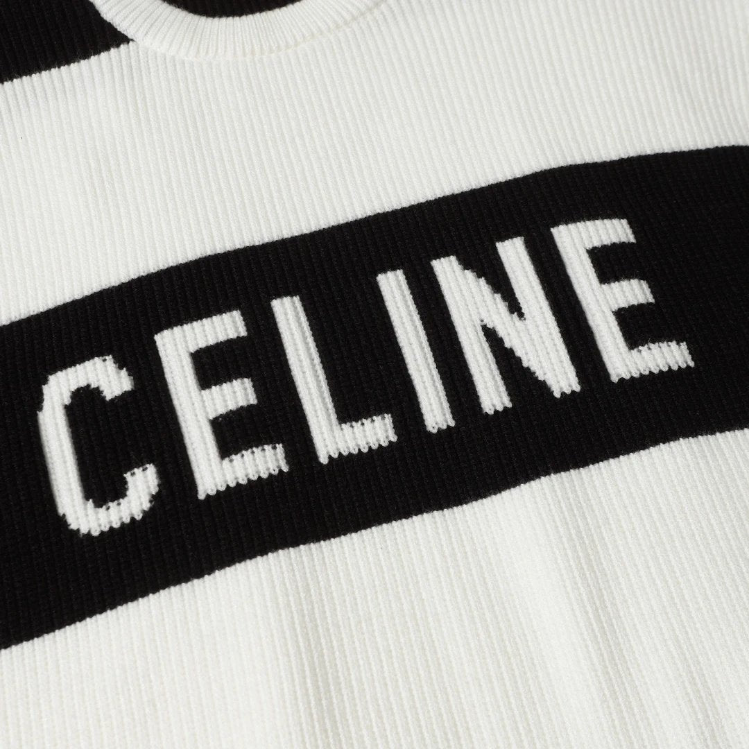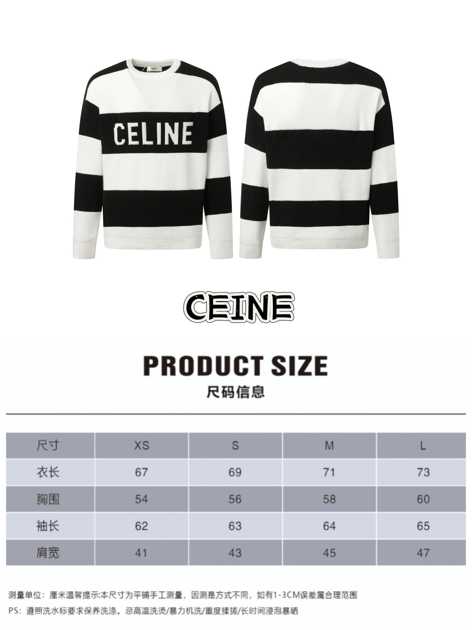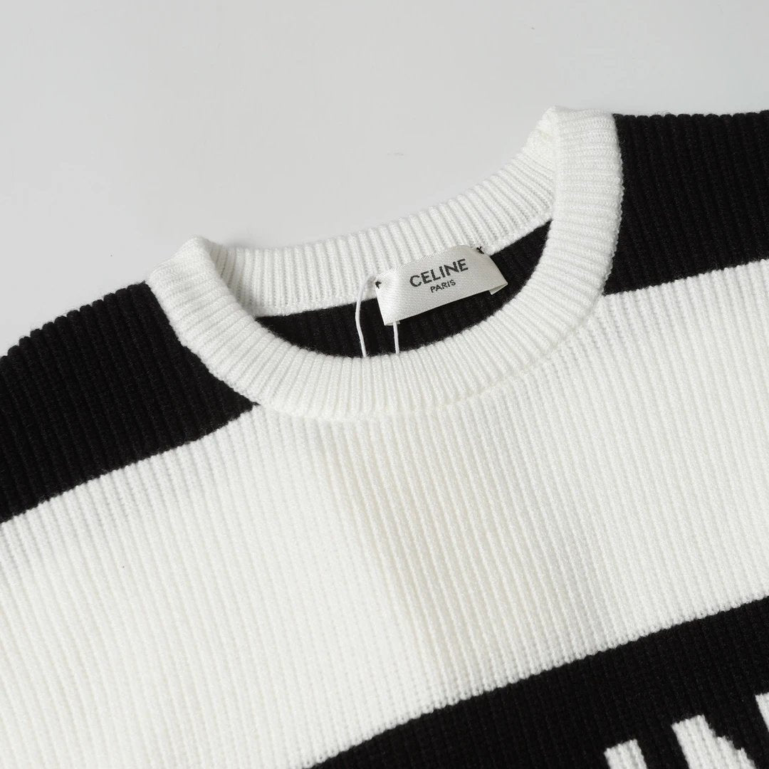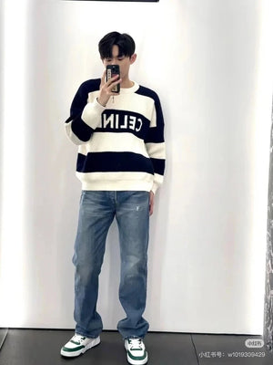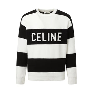 Top Version CELINE Celine Knitted Jacquard Striped Crew Neck Sweater Long Sleeve Pullover Thickened Lazy Style OS Version Loose Unisex Loose Knitted Top Coat Versatile Casual Pre-Purchase Instructions