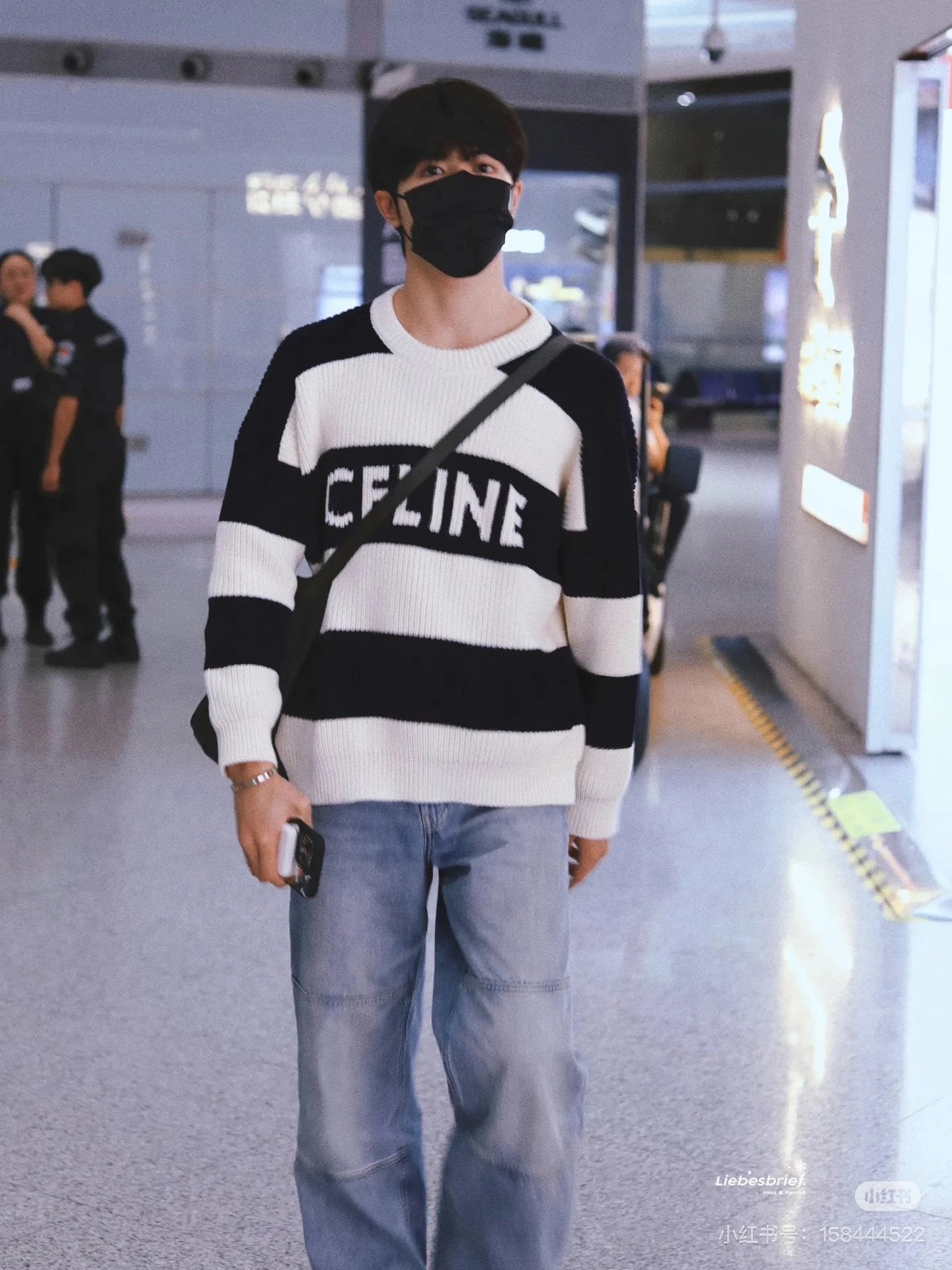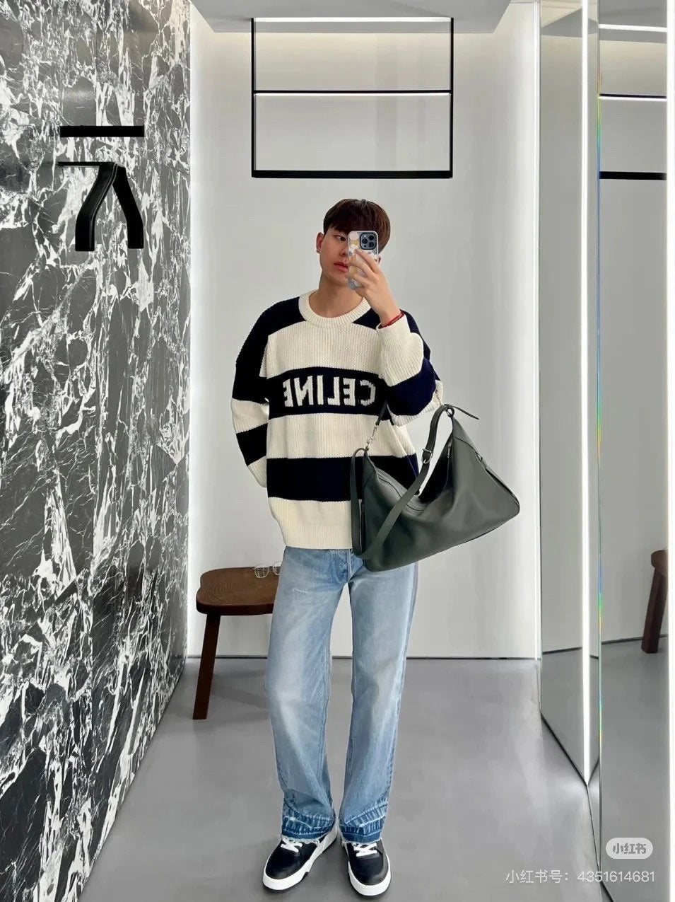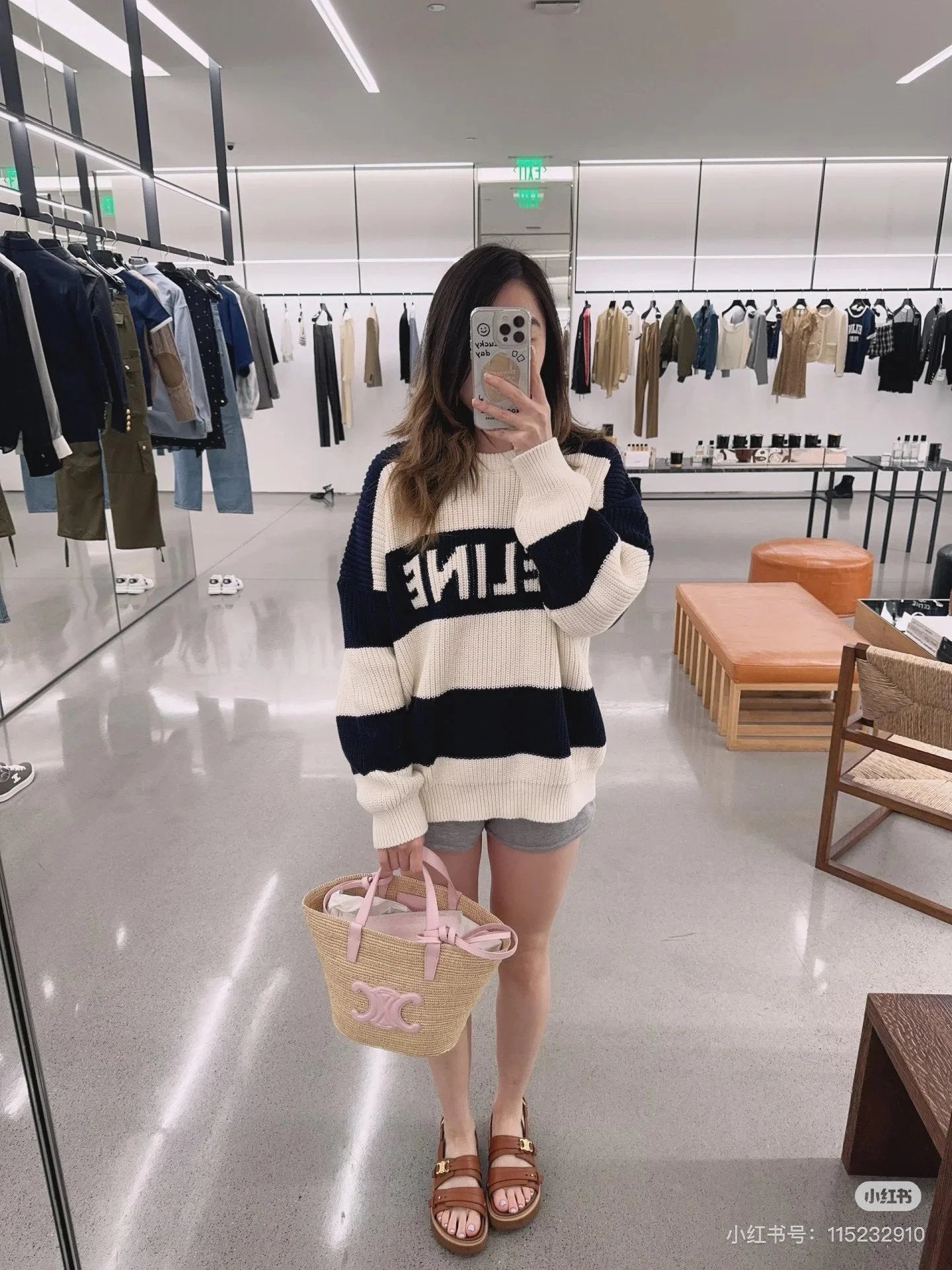 Top Version CELINE Celine Knitted Jacquard Striped Crew Neck Sweater Long Sleeve Pullover Thickened Lazy Style OS Version Loose Unisex Loose Knitted Top Coat Versatile Casual Pre-Purchase Instructions
