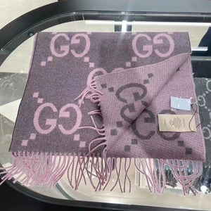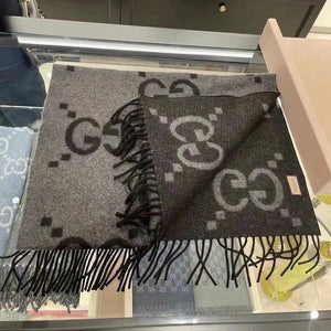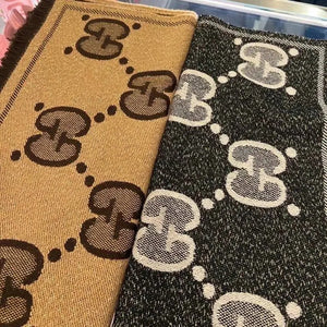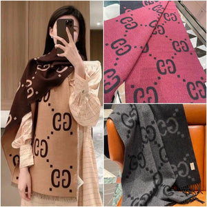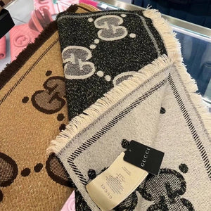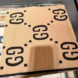 Gucci Scarf Large logo Printed Caramel Wool Silk Double-Sided Scarf Shawl Scarf