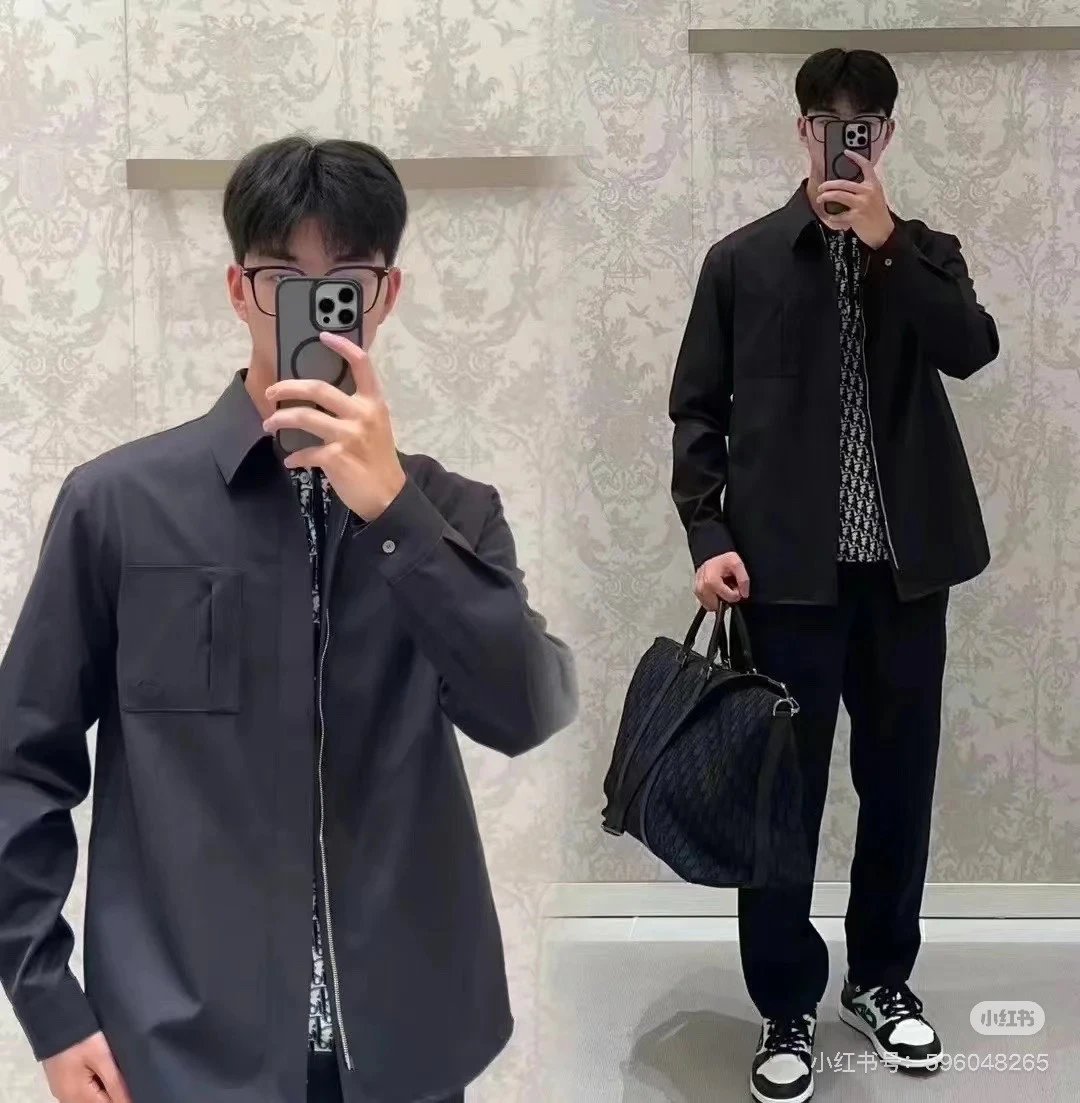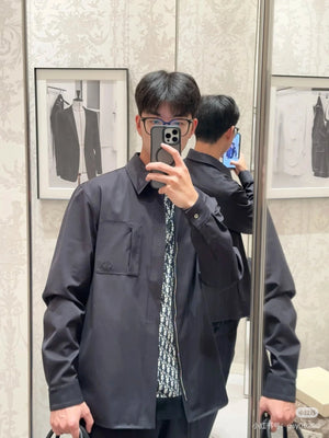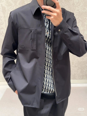 Dior Shirt Latest Series Pocket logo Embroidered Zipper Thickened Shirt Winter Unisex