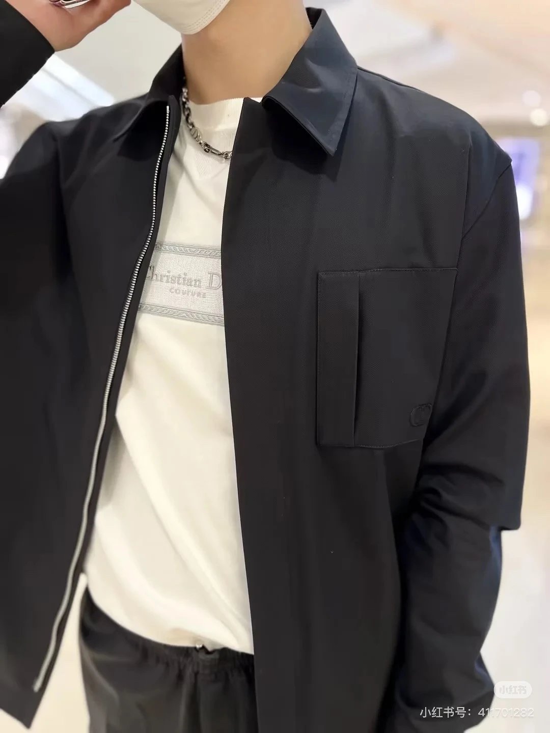 Top Version DIOR/Dior Latest Collection Pocket Logo Embroidery Zipper Thickened Shirt Winter Unisex Pre-Purchase Instructions
