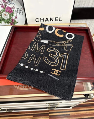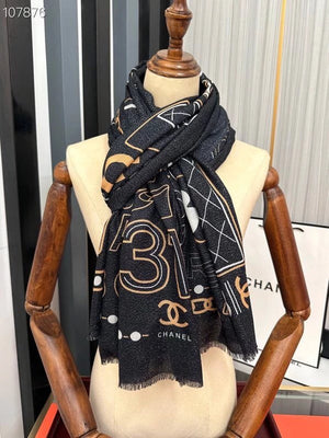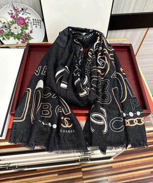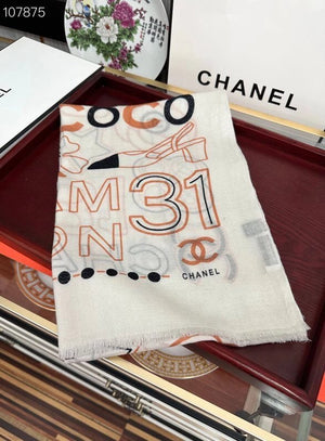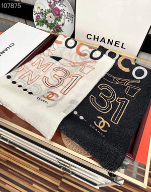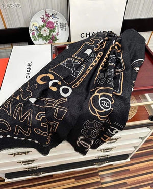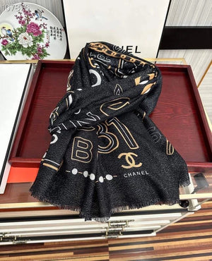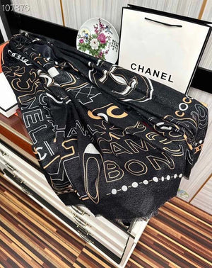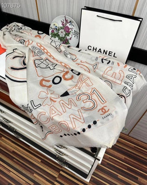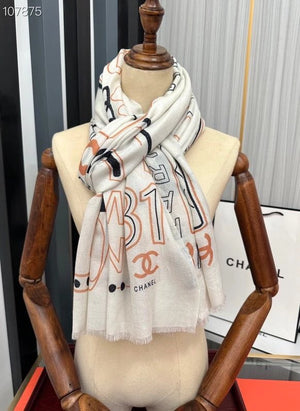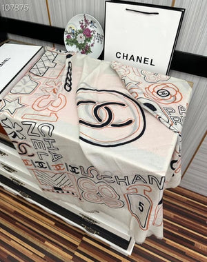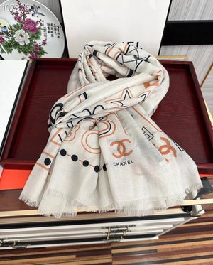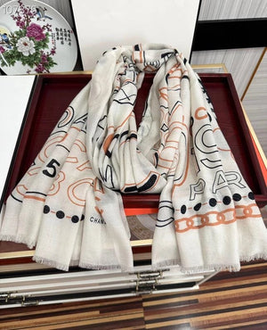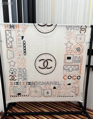 Chanel Scarf Latest Silver Silk Shawl with Printing No Matter the Design Spray Painting Is