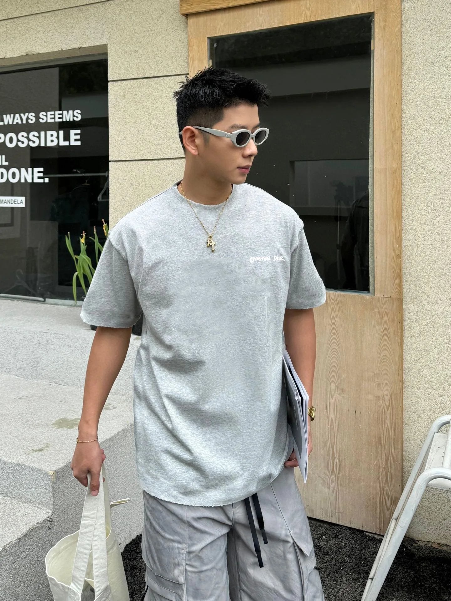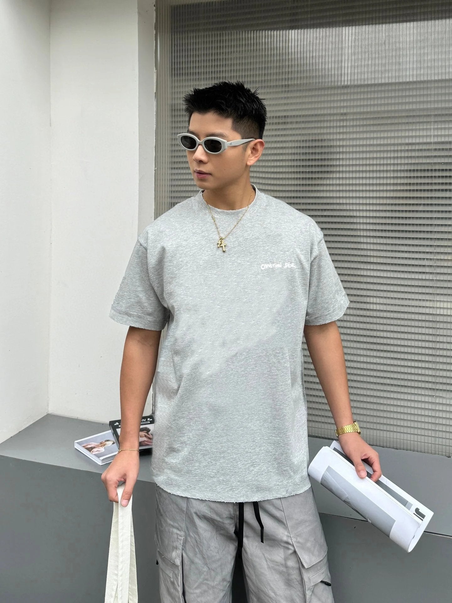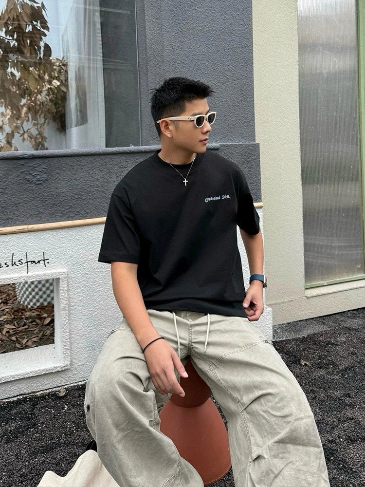 Dio 2025 Spring/Summer New Chest Letter Embroidery Short Sleeve T-Shirt Custom Double Yarn Plain Cotton 300 Fabric Unisex