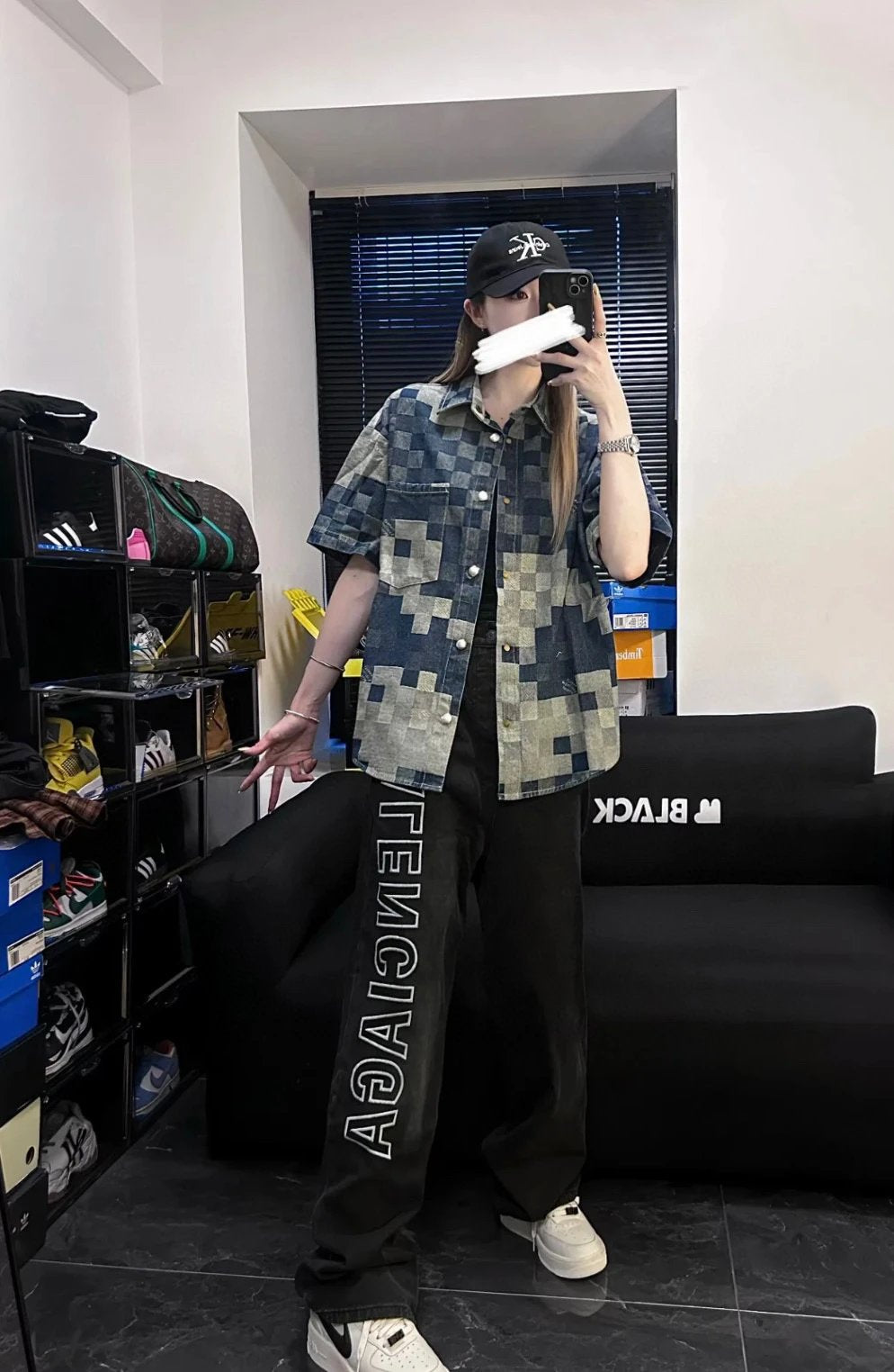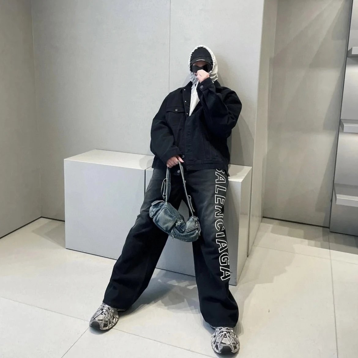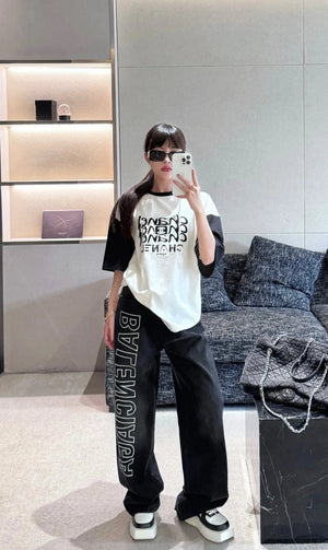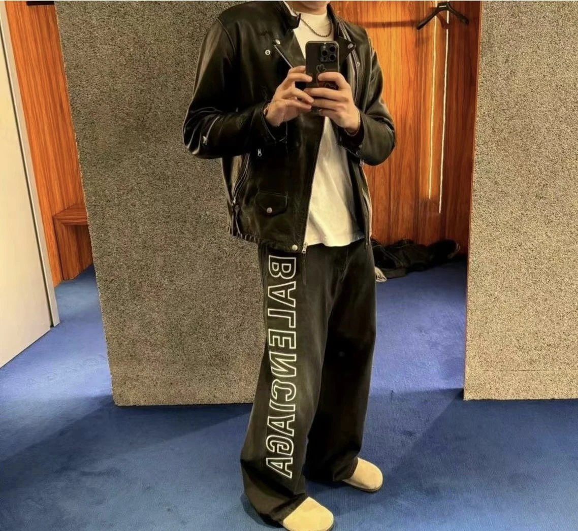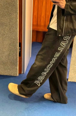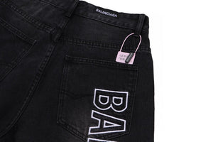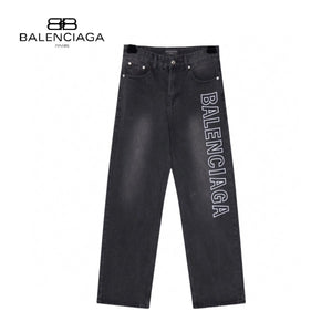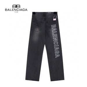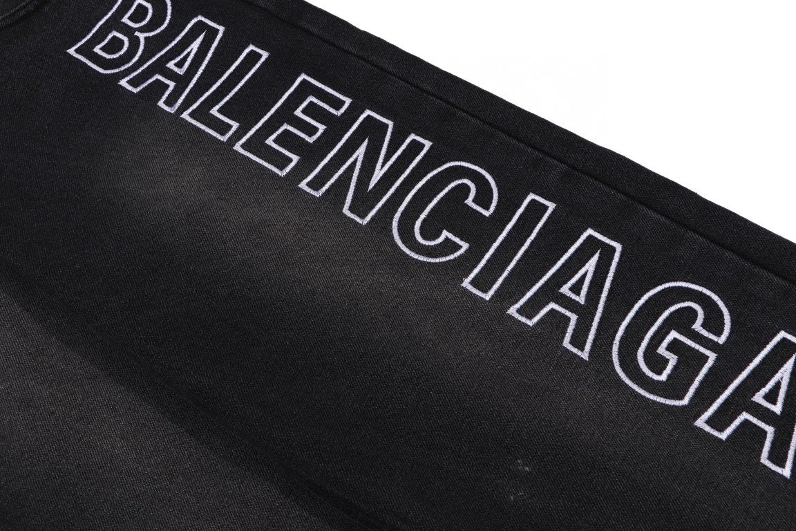 Balenciaga Washed Letter Embroidery Wide-Leg Jeans