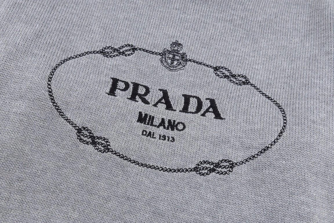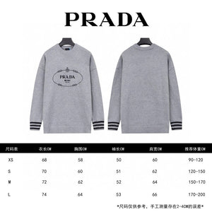 Top Version Prad * PRA * Letter Embroidery Long Sleeve Sweater Long Sleeve Pullover Thickened Idle Style OS Version Loose P Home Coat Men and Women Same Style Loose Knitted Top