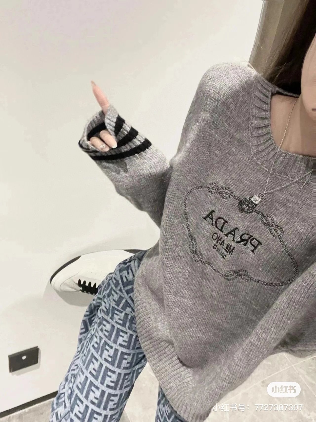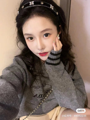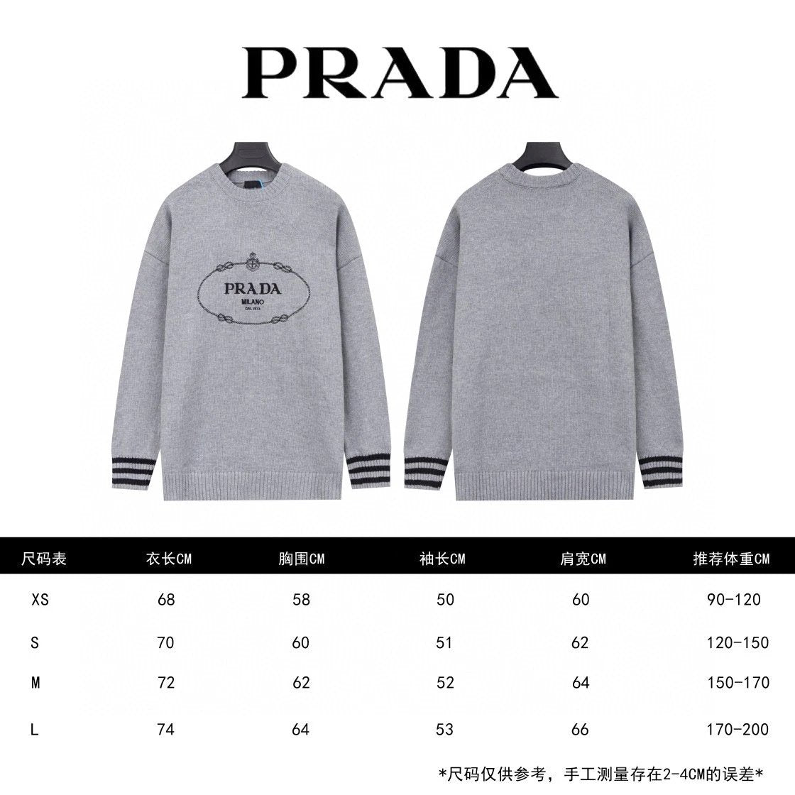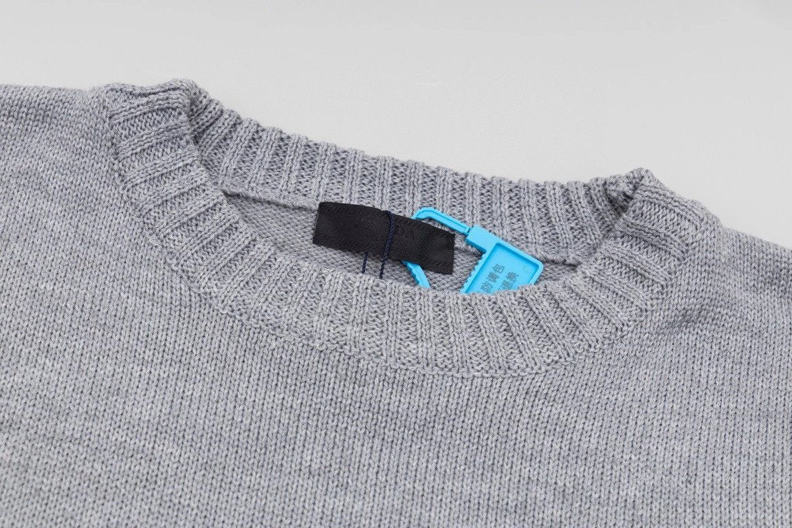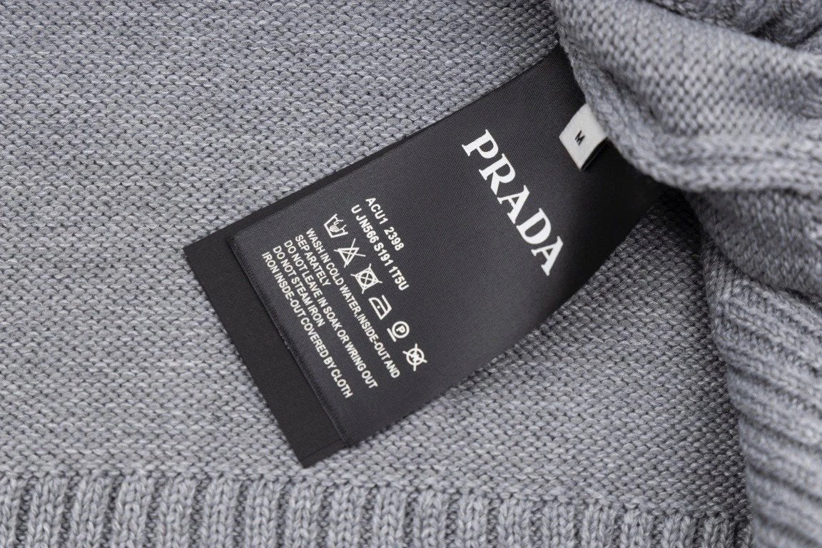 PRADA Sweater Letter Embroidery Long Sleeve Sweater Thickened Lazy Style OS Loose Fit Knit Jacket Unisex