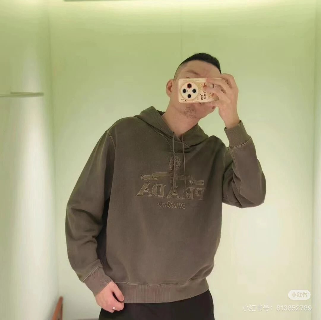 PRADA Hoodie Letter Embroidery Washed Hoodie Sweatshirt420100% Pure Cotton Terry Pullover Hoodie os Unisex Sports Tracksuit24ss Autumn and Winter New Products