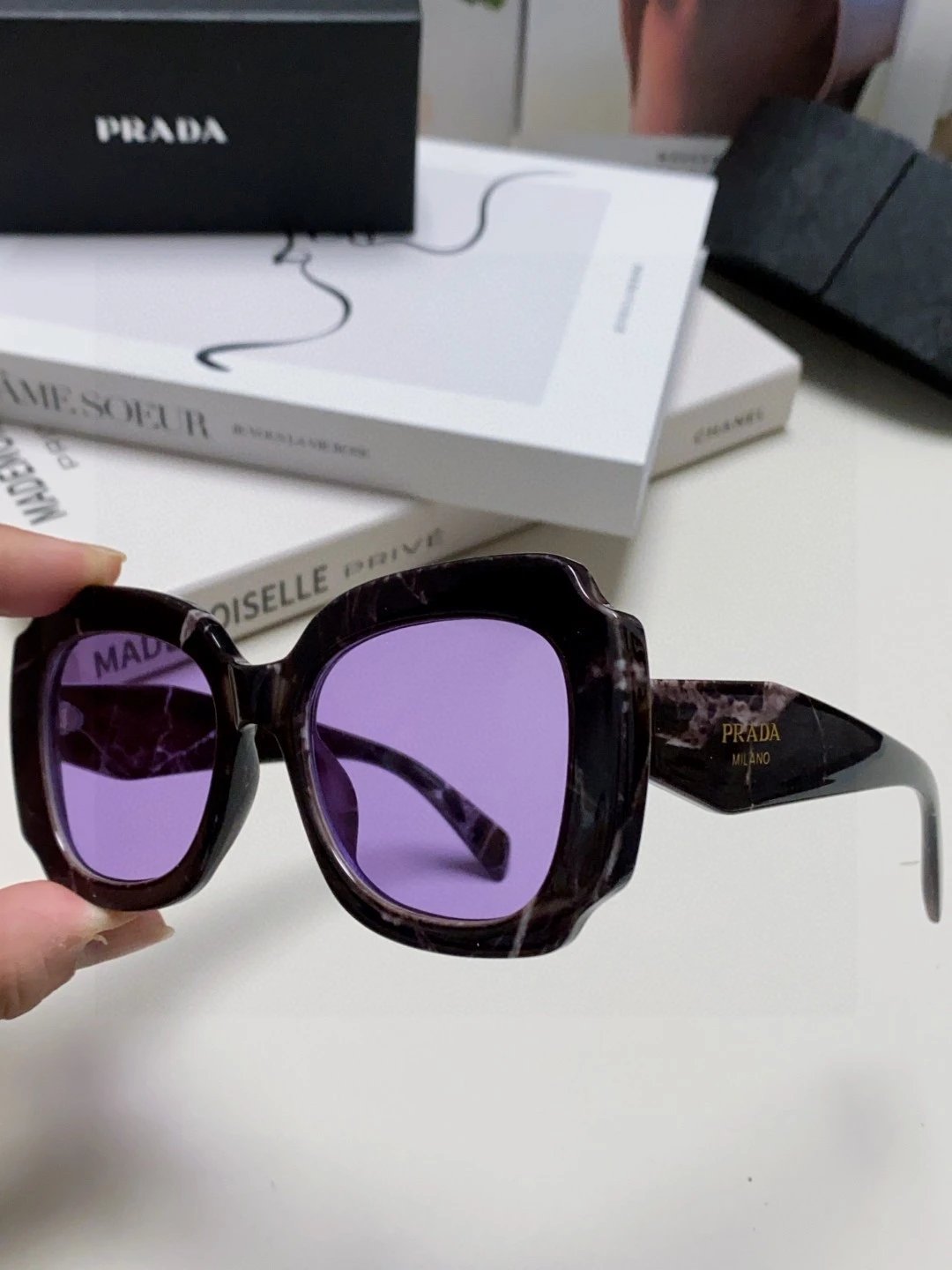 PRADA Sunglasses Letter Logo Temple Sunglasses Slimming Non-Prescription Driving Beach Fishing Women's UV Protection25ss New Sports Casual Versatile