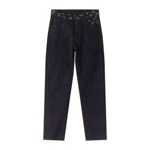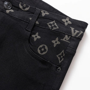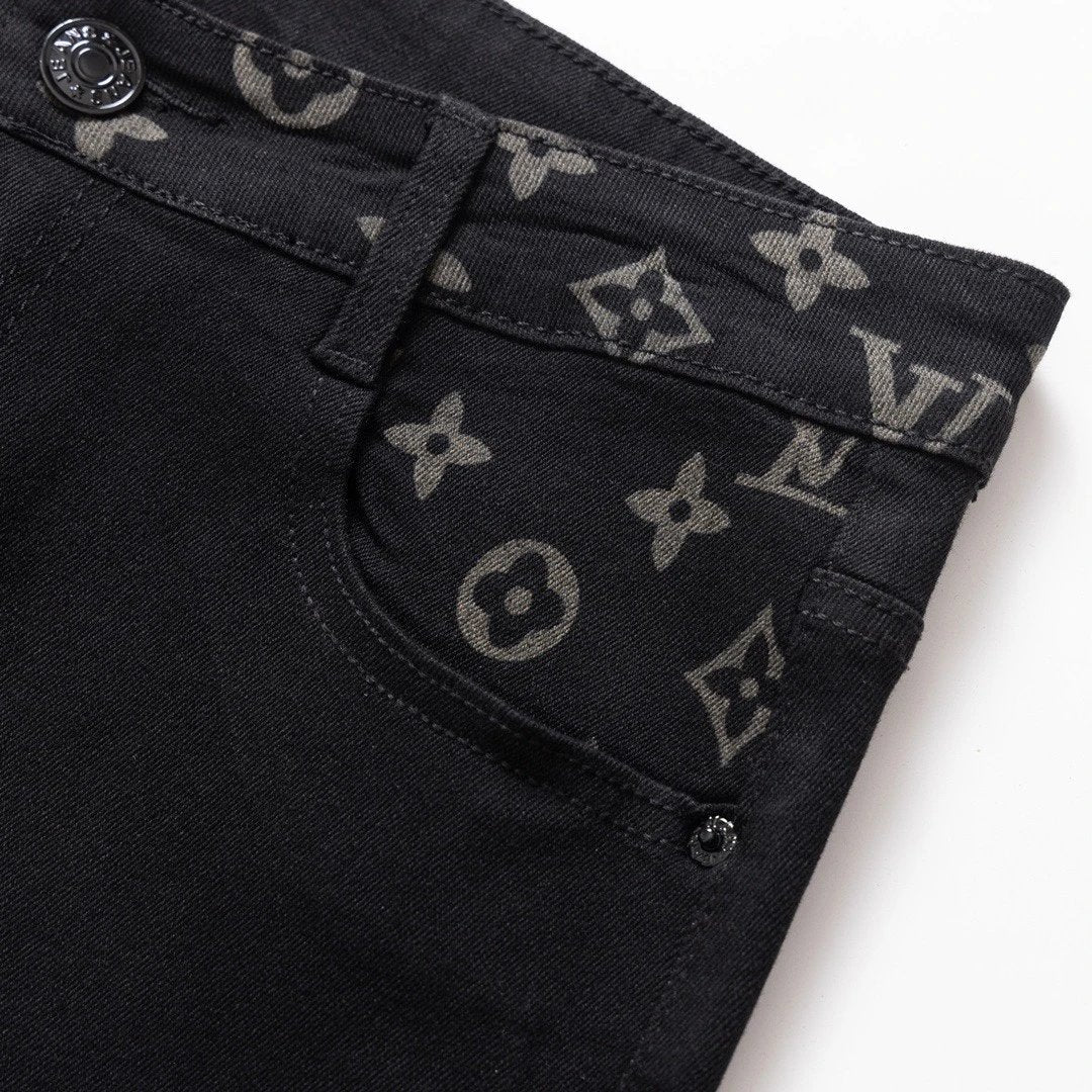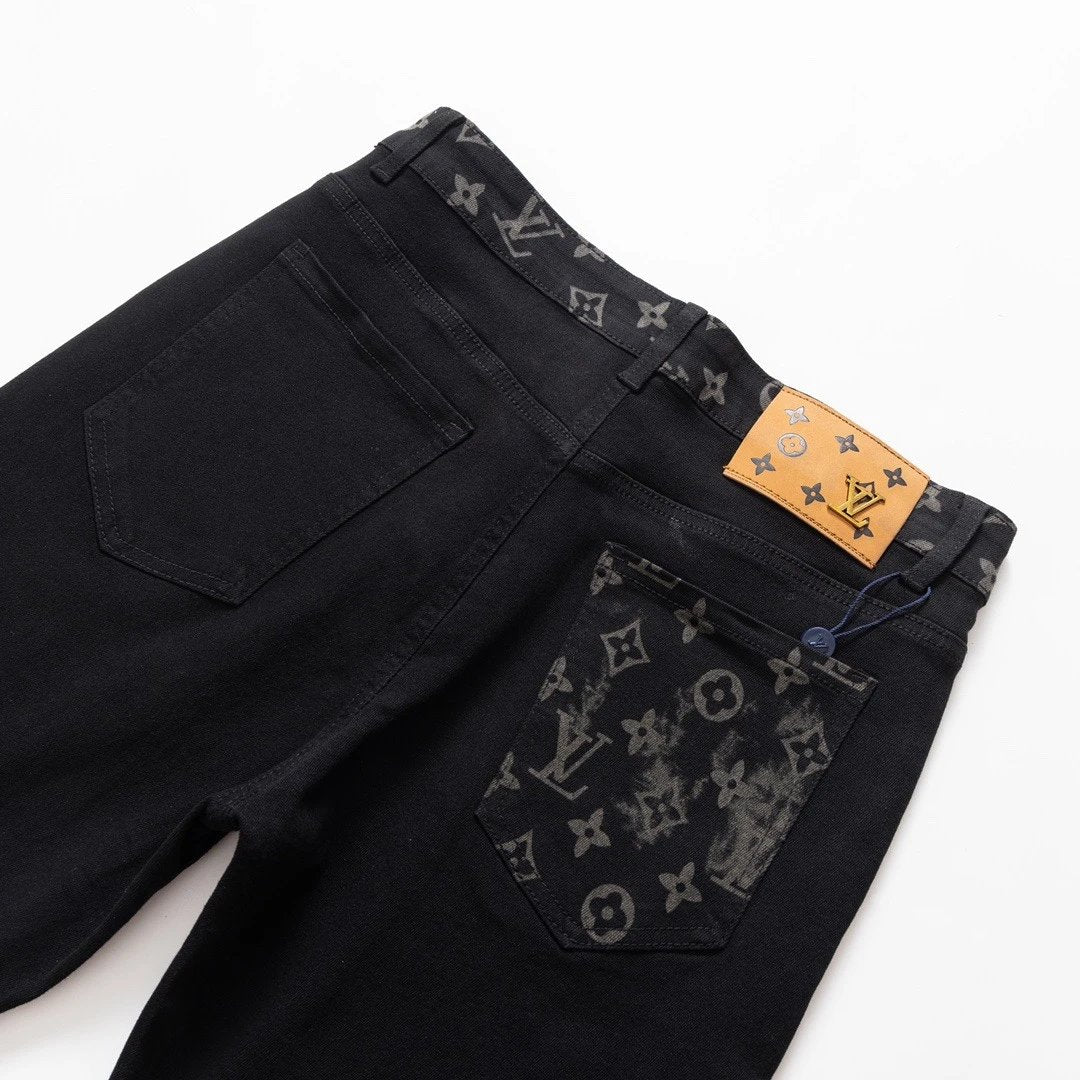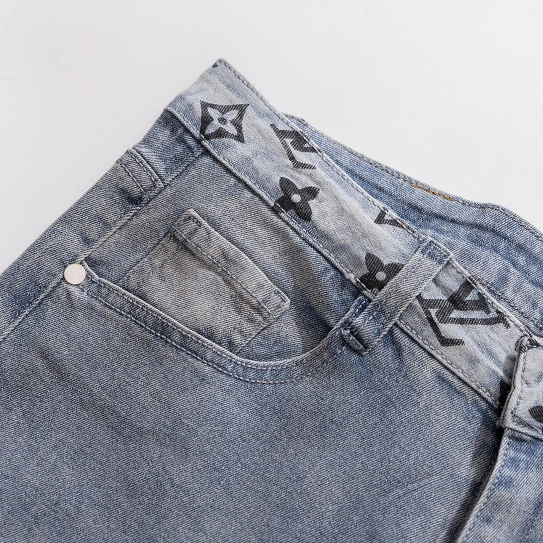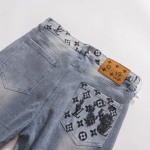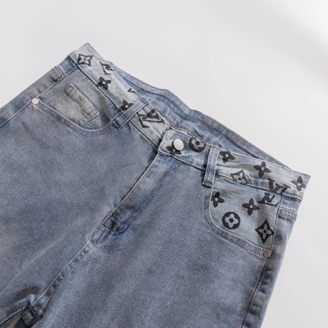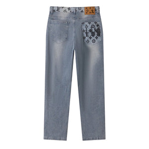 Louis Vuitton LV Jeans Letter Old Flower Print Pocket Straight Jeans Autumn Winter New Unisex Long Pants Loose Casual Wide Leg High Waist